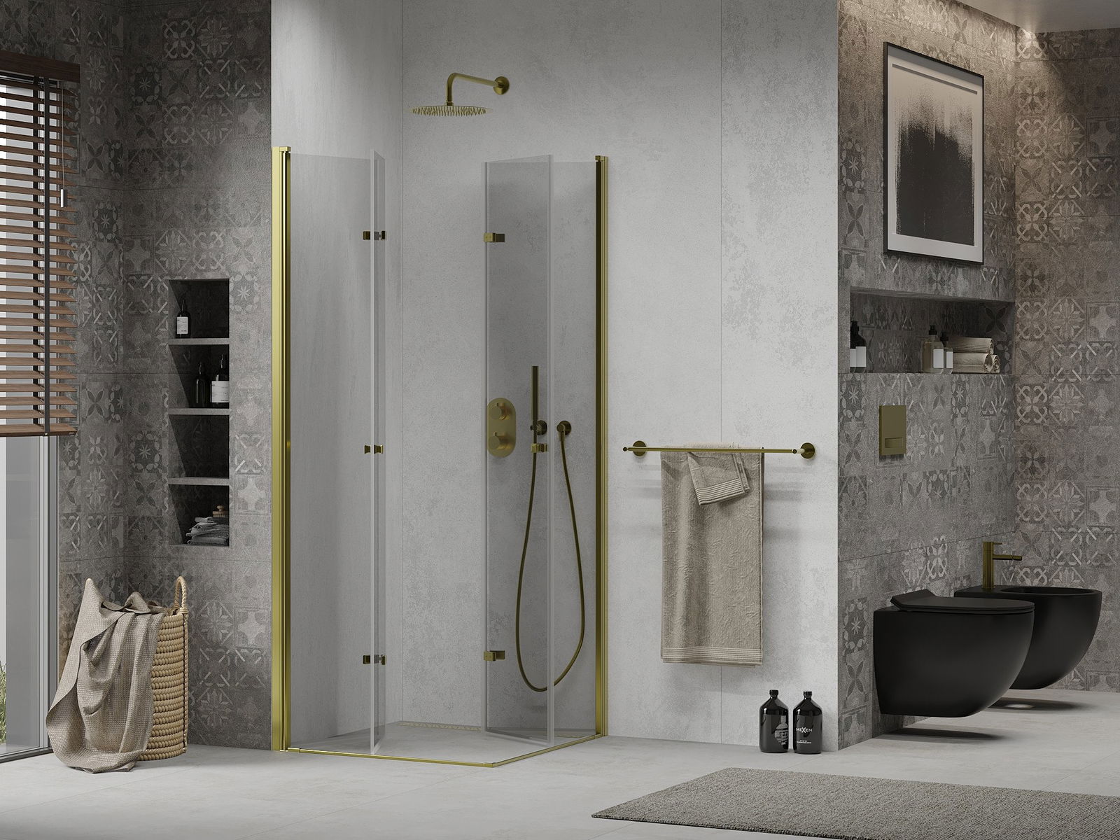 La poignée pratique et confortable est fabriquée en métal durable et résistant. Sa forme élégante, associée à une finition assortie à la couleur des profilés, confère à l'ensemble un style moderne et élégant, soulignant l'esthétique de chaque salle de bains.