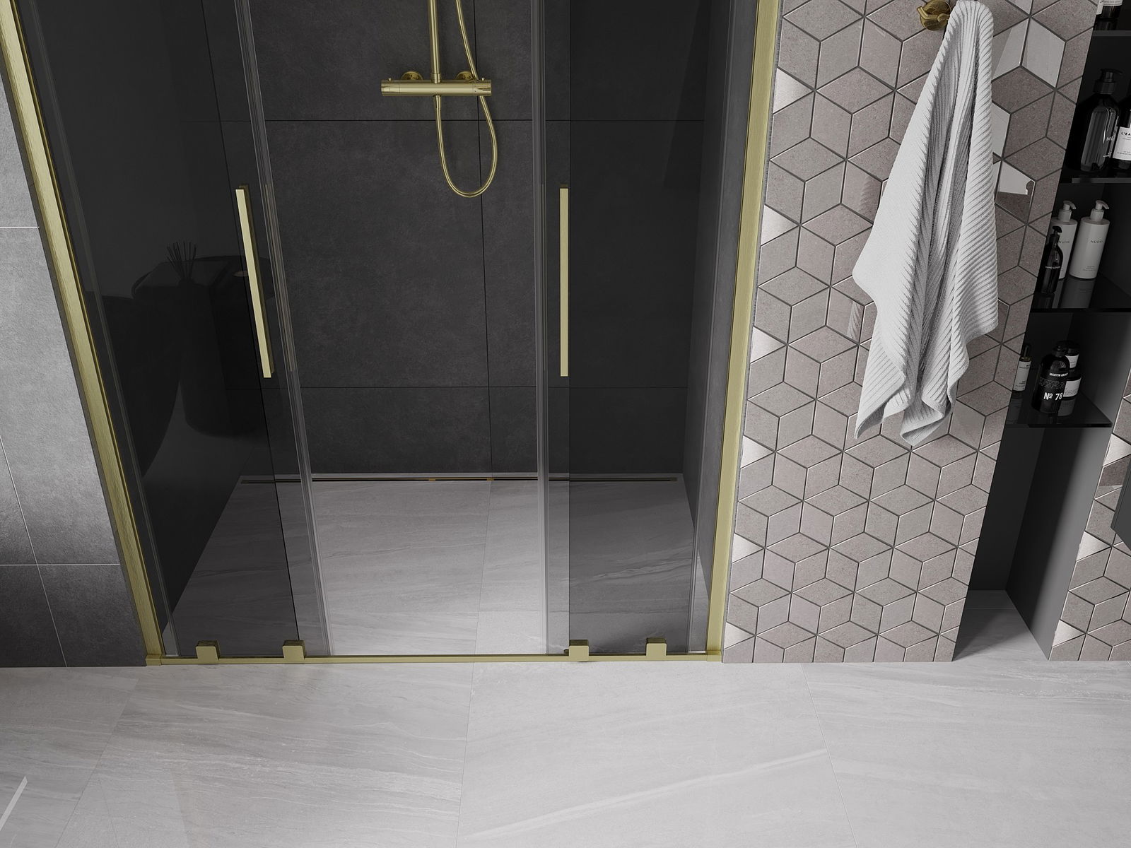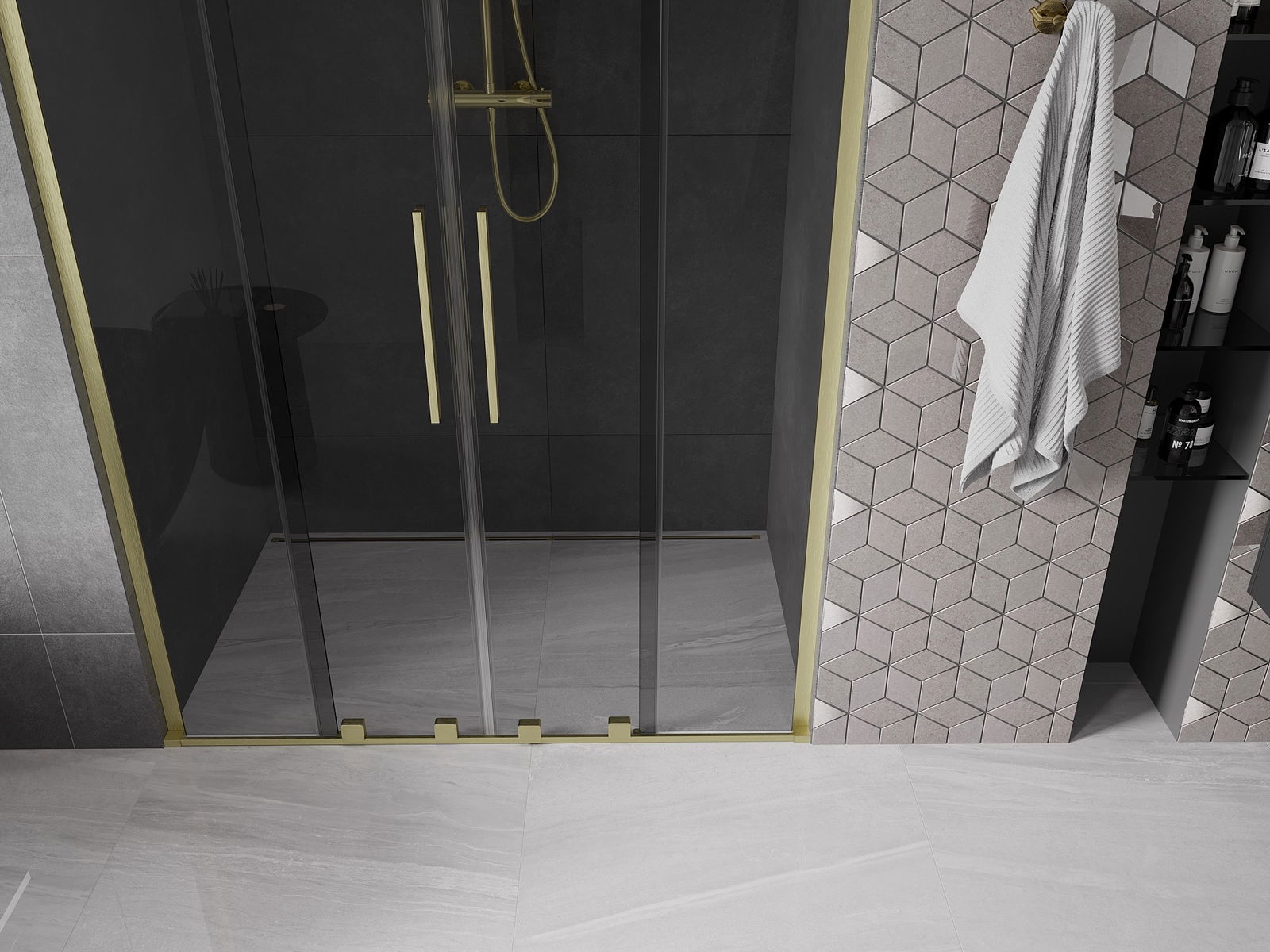 Mexen Velar L Duo porte de douche coulissante 160 cm, graphite, doré brossé - 871-160-003-42-55