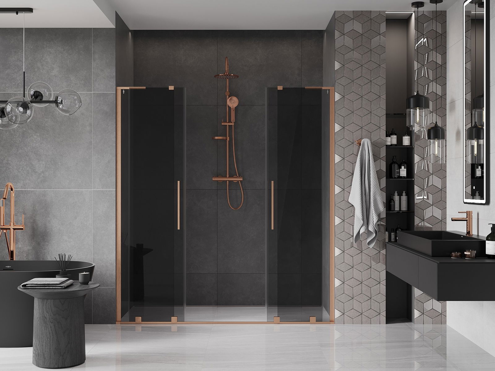 Mexen Velar L Duo portes de douche coulissantes 180 cm, graphite, cuivre brossé - 871-180-003-42-65