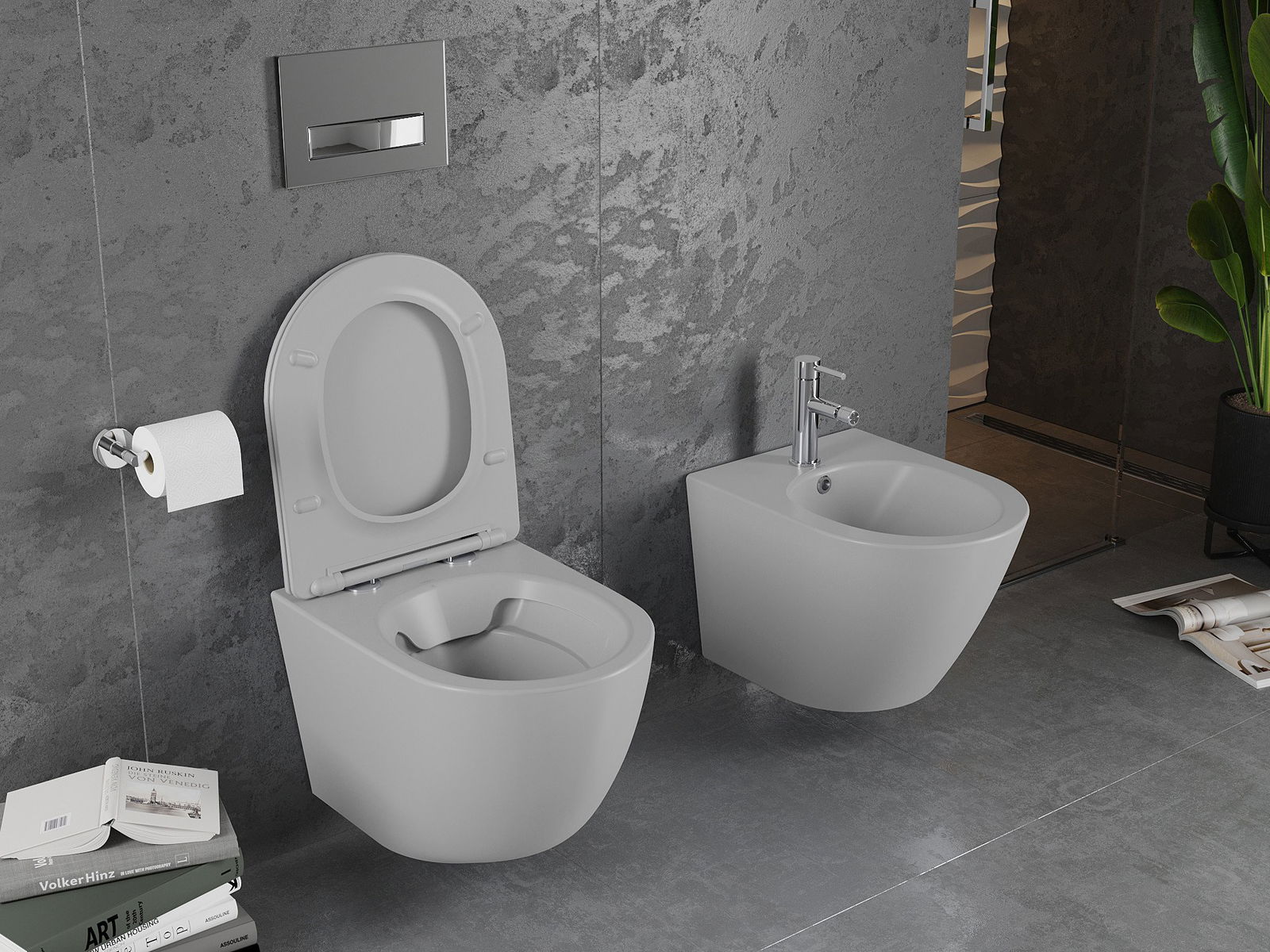 L'ensemble comprend des charnières métalliques solides qui garantissent une fixation stable de l'abattant à la cuvette. Cette solution pratique permet d'ajuster facilement l'abattant à la forme et aux dimensions des toilettes, pour un confort d'utilisation optimal.