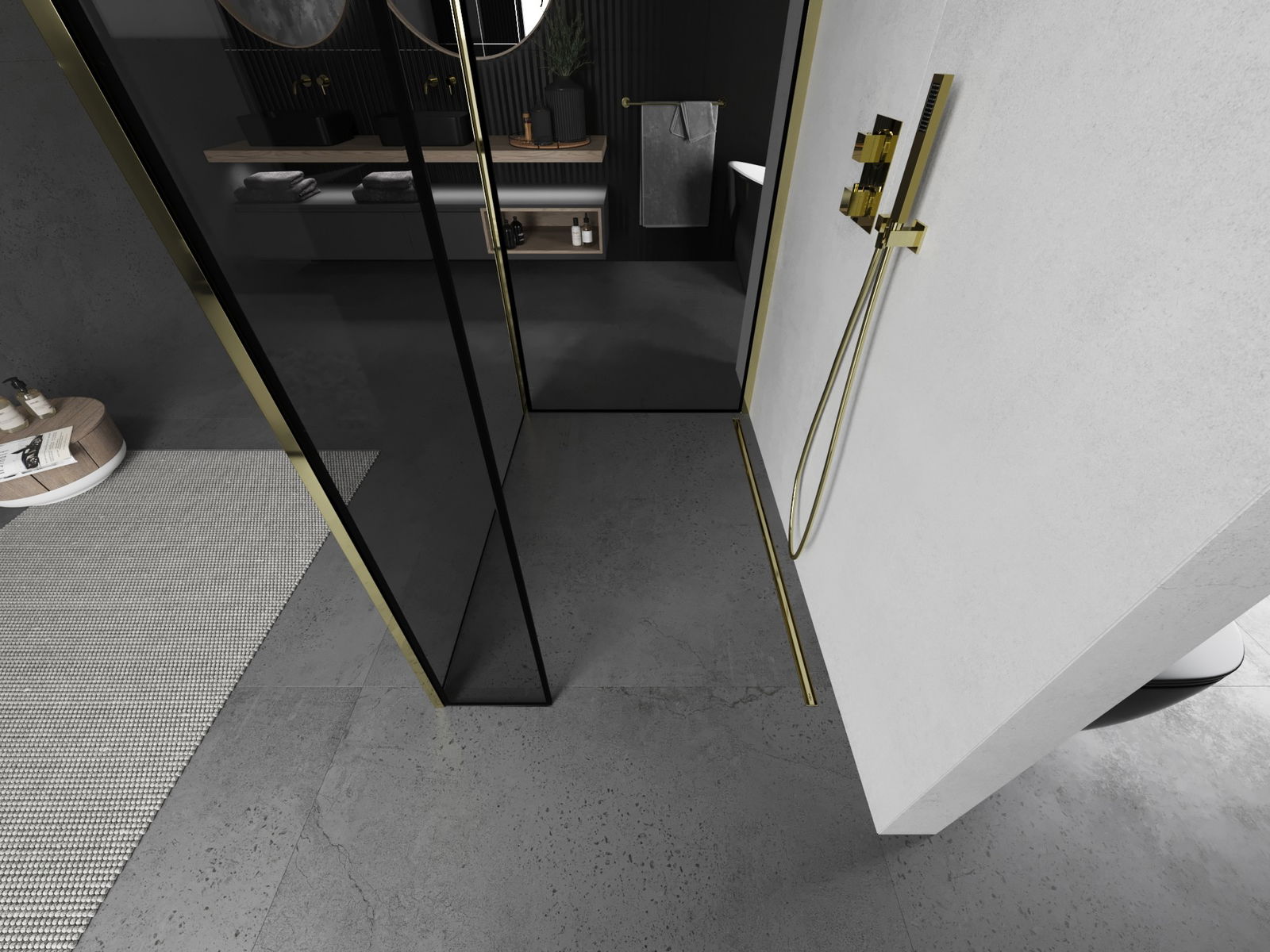 Mexen Kioto paroi de douche Walk-in 130 x 120 x 40 cm, cadre noir, doré - 800-130-120-221-50-70-040