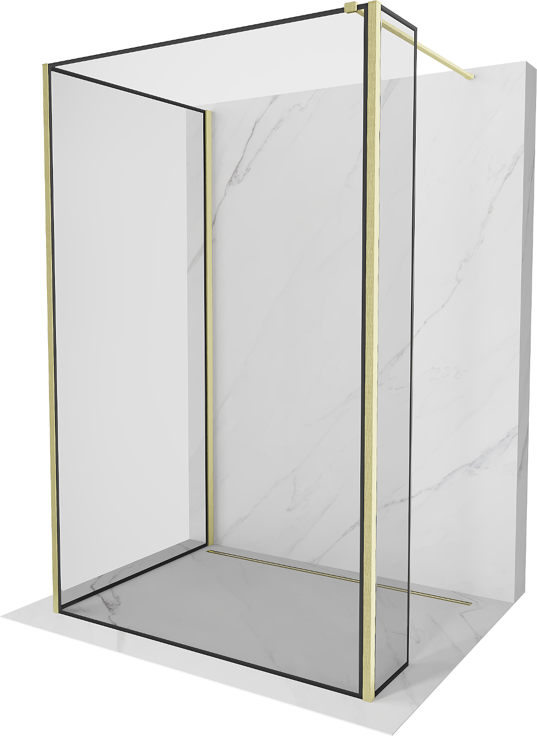 Mexen Kioto paroi de douche Walk-in 90 x 90 x 40 cm, cadre noir, or brossé - 800-090-090-221-55-70-040