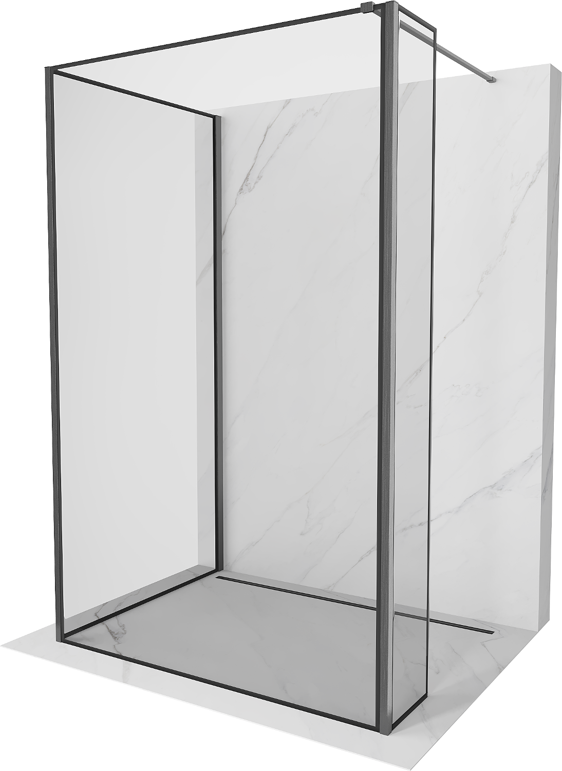 Mexen Kioto paroi de douche Walk-in 120 x 80 x 40 cm, cadre noir, gun gray brossé - 800-120-080-221-66-70-040