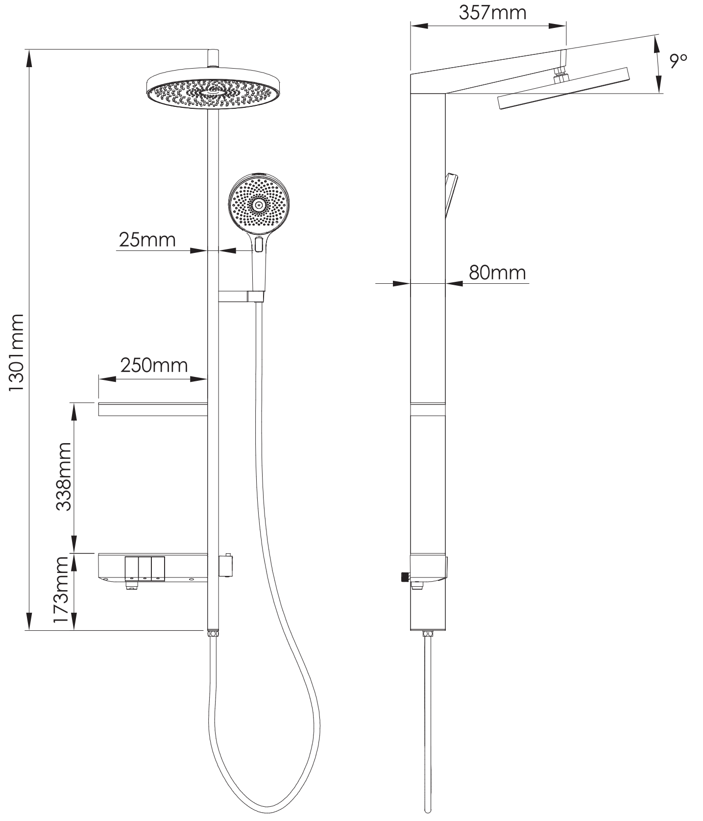 Taille de la pomme de douche : ø255 mm