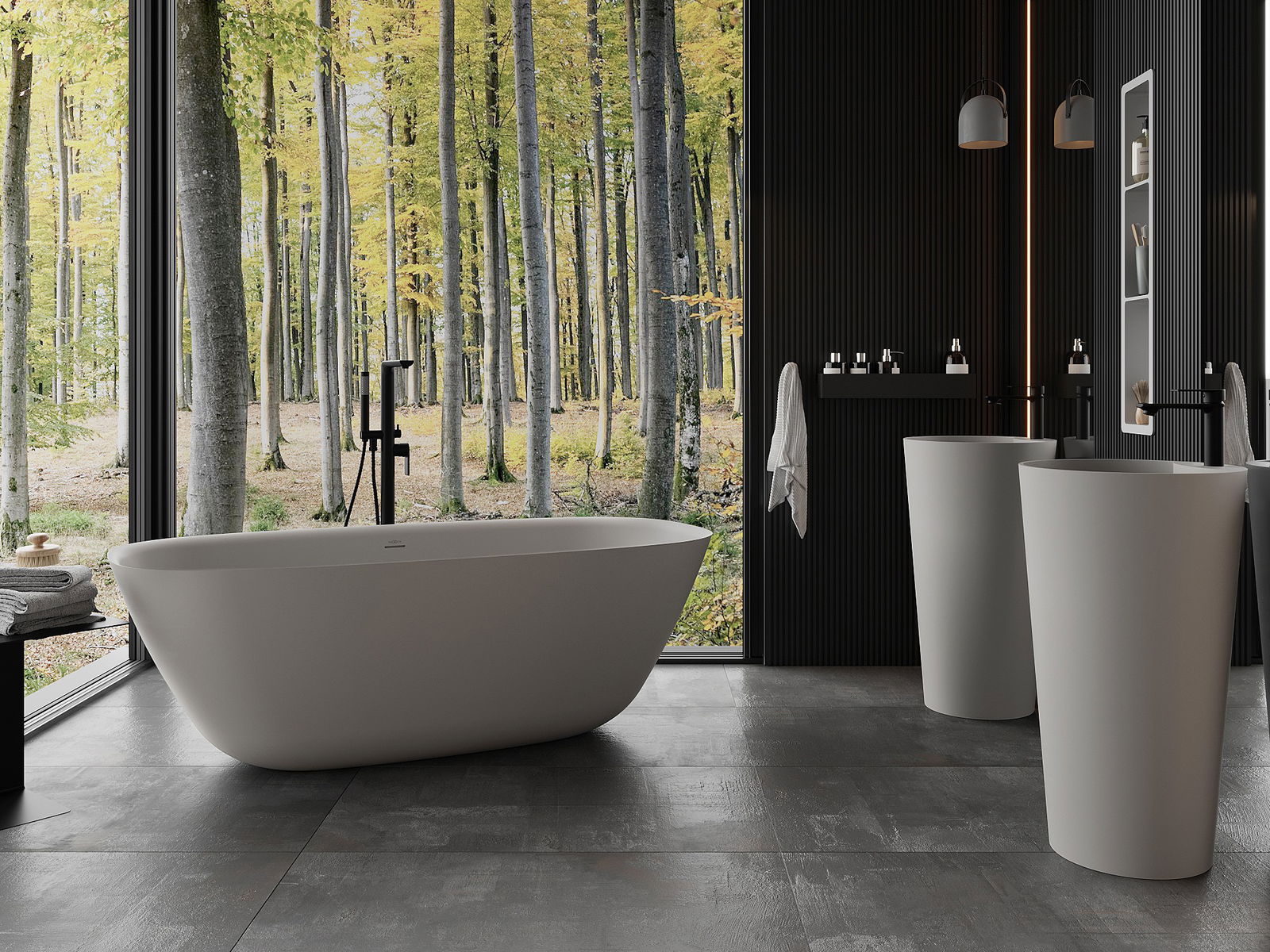 La surface mate souligne parfaitement le caractère de la couleur du produit, lui conférant une finition unique et expressive. La structure subtile de la baignoire mate apporte de l'élégance à la salle de bain, créant un espace esthétique.