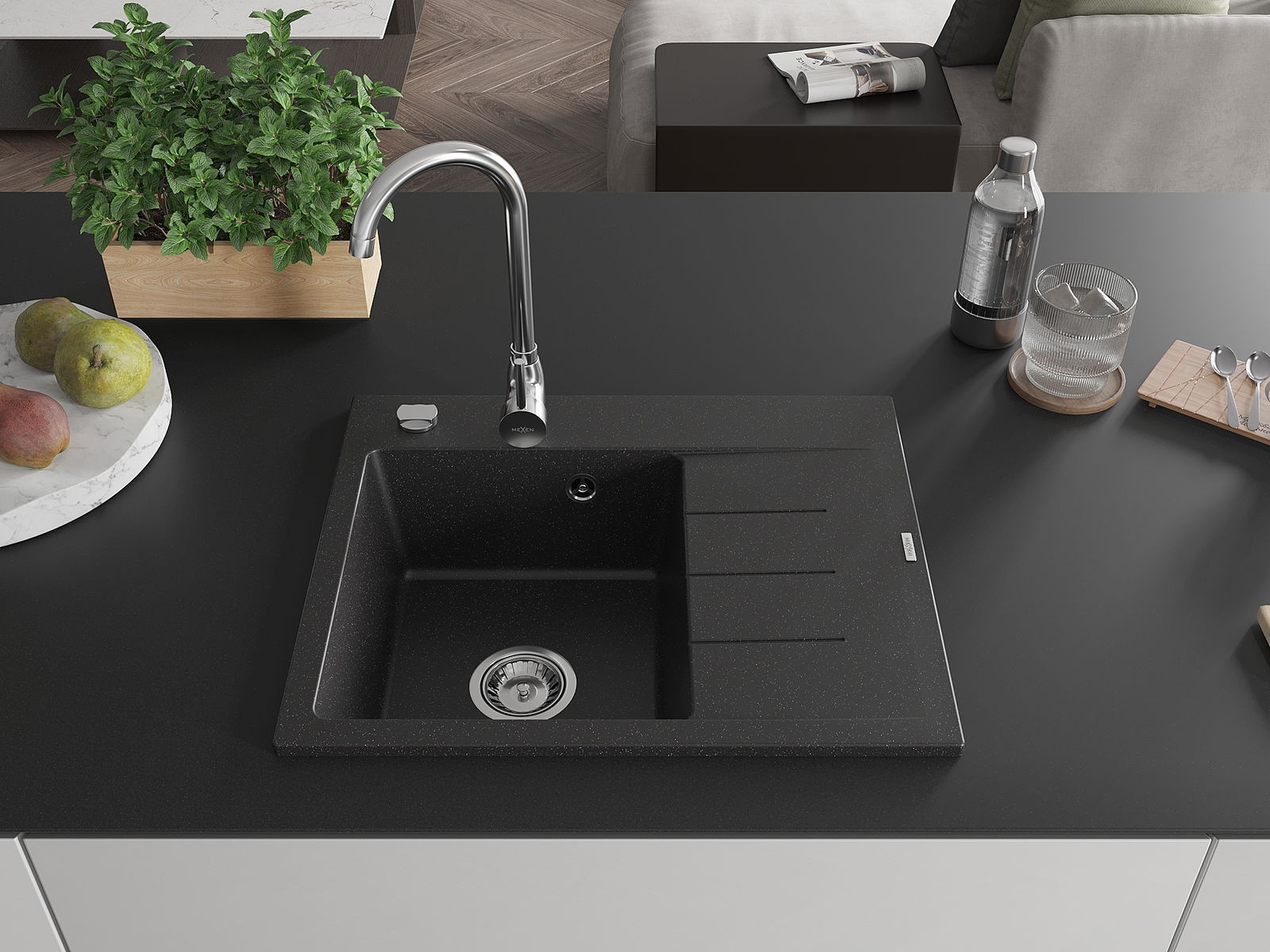 L'évier a été fabriqué en granit de haute qualité. Il constitue un complément élégant et surtout pratique pour chaque cuisine, quel que soit son style. La haute qualité et la durabilité du granit garantissent une utilisation de plusieurs années.