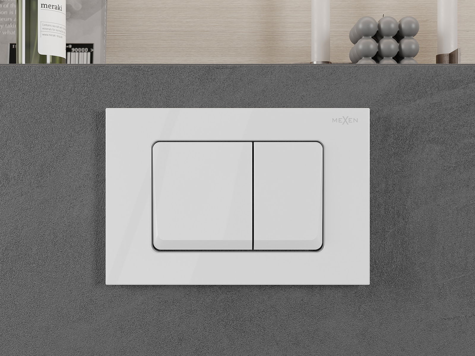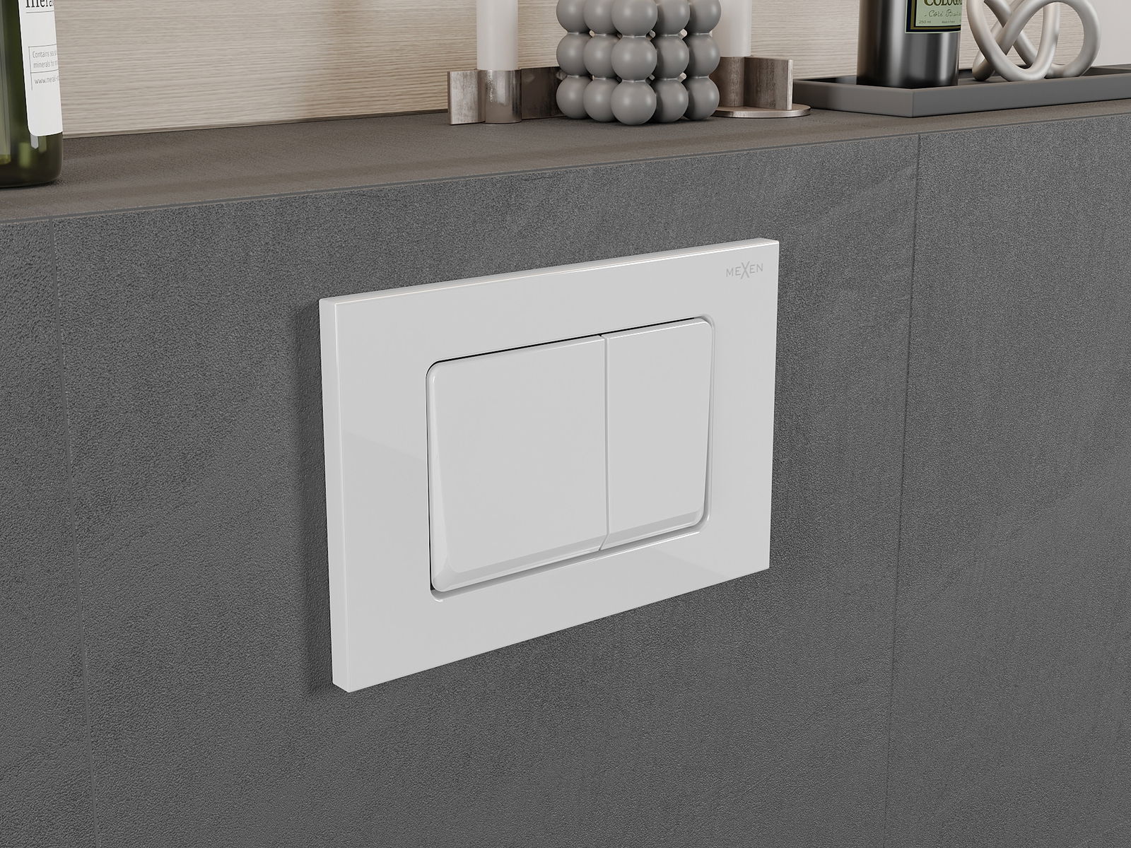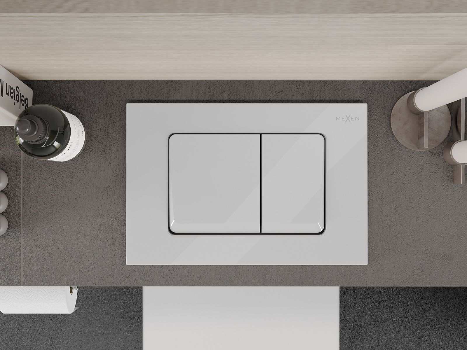 Le bouton est conçu pour les châssis Mexen de la série XS. Il peut être monté à la fois à l'avant et en haut du châssis, ce qui augmente son universalité. Cette solution facilite l'installation dans différentes conditions de montage. Ainsi, le contrôle de la chasse d'eau est pratique et intuitif.