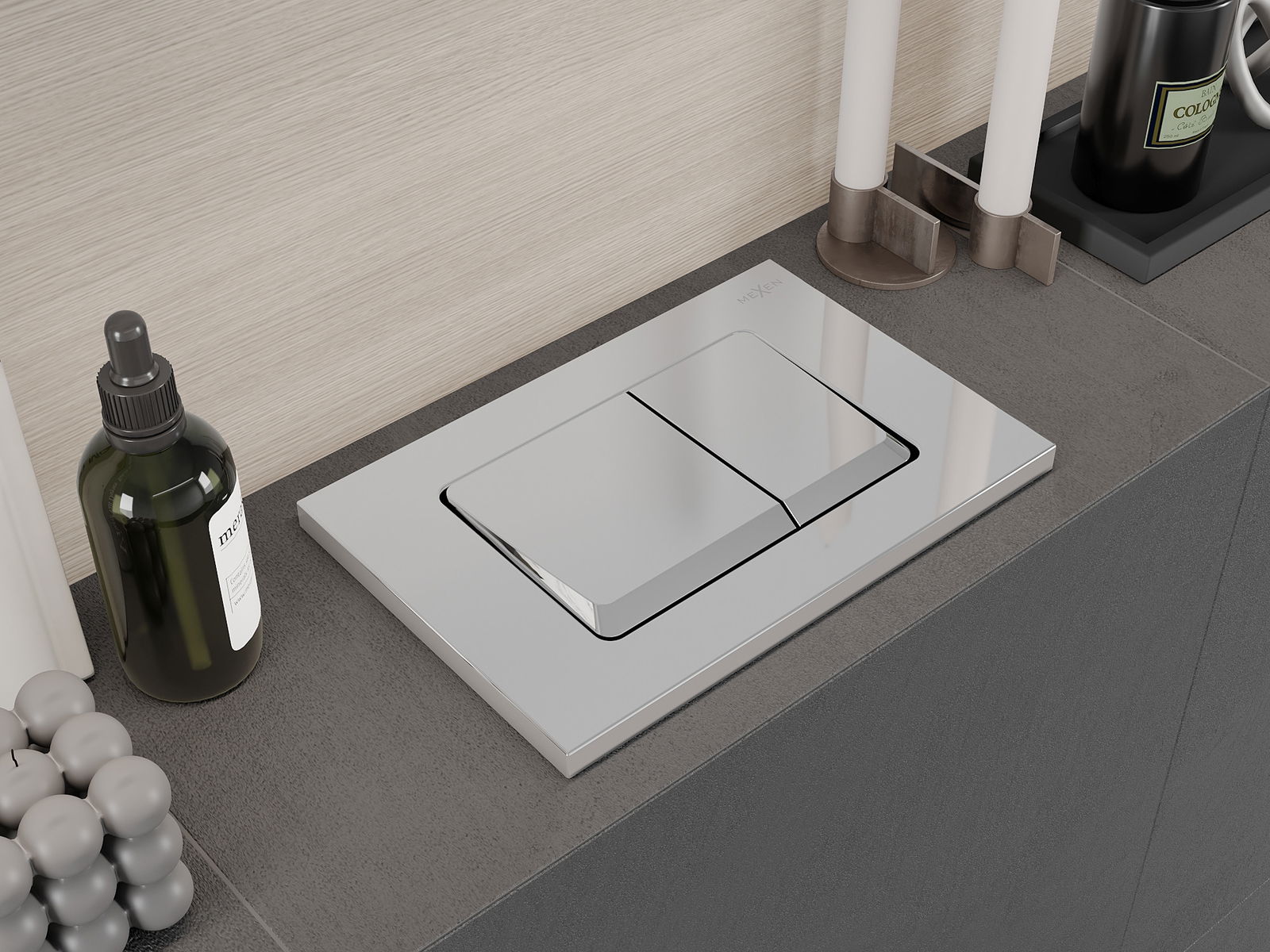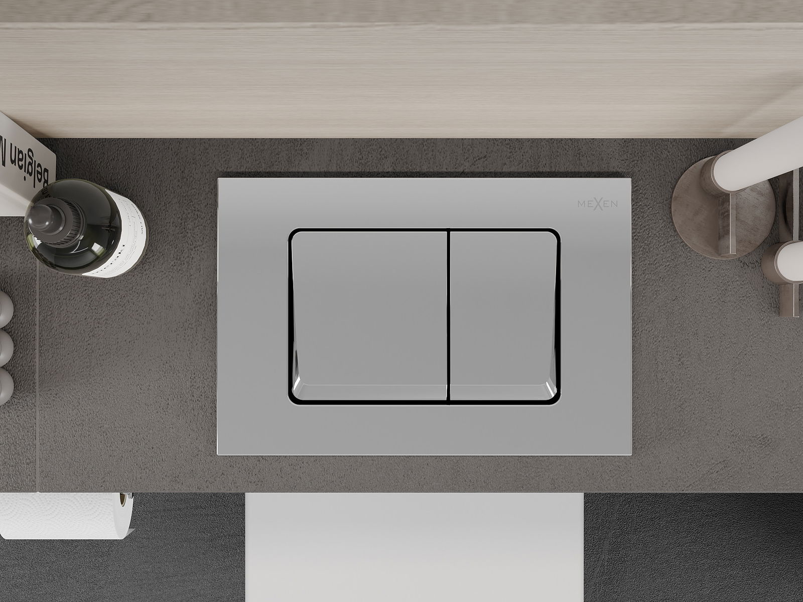 Le bouton est conçu pour les châssis Mexen de la série XS. Il peut être monté à la fois à l'avant et en haut du châssis, ce qui augmente son universalité. Cette solution facilite l'installation dans différentes conditions de montage. Ainsi, le contrôle de la chasse d'eau est pratique et intuitif.
