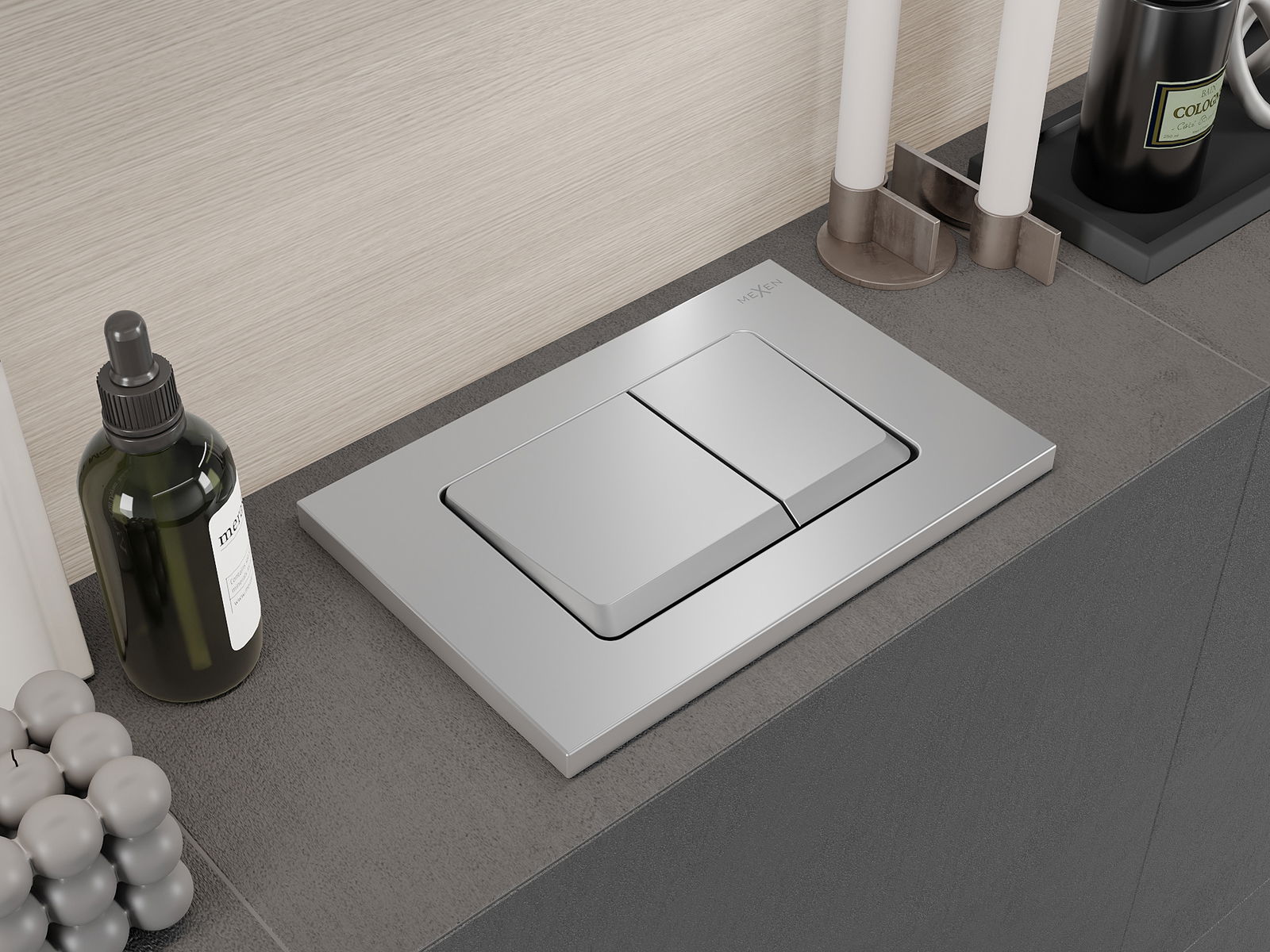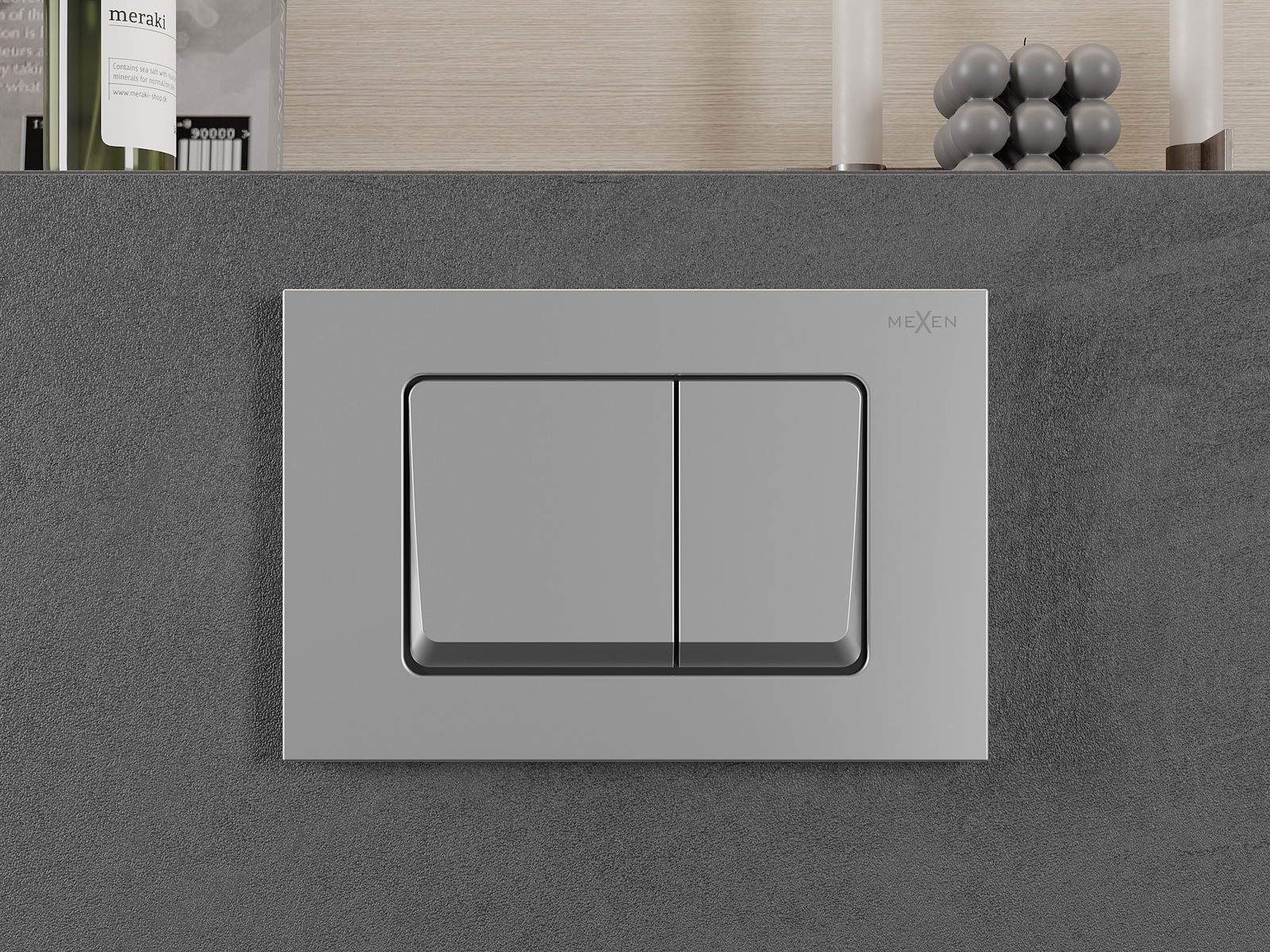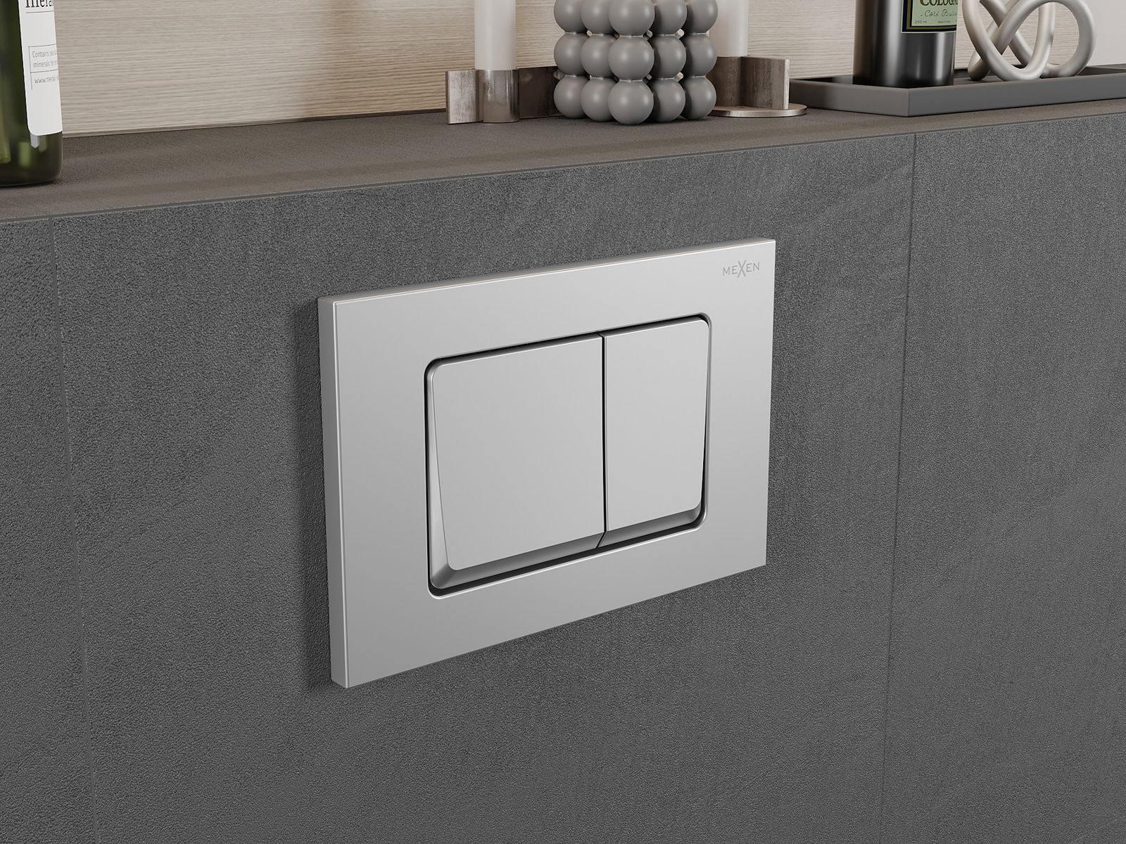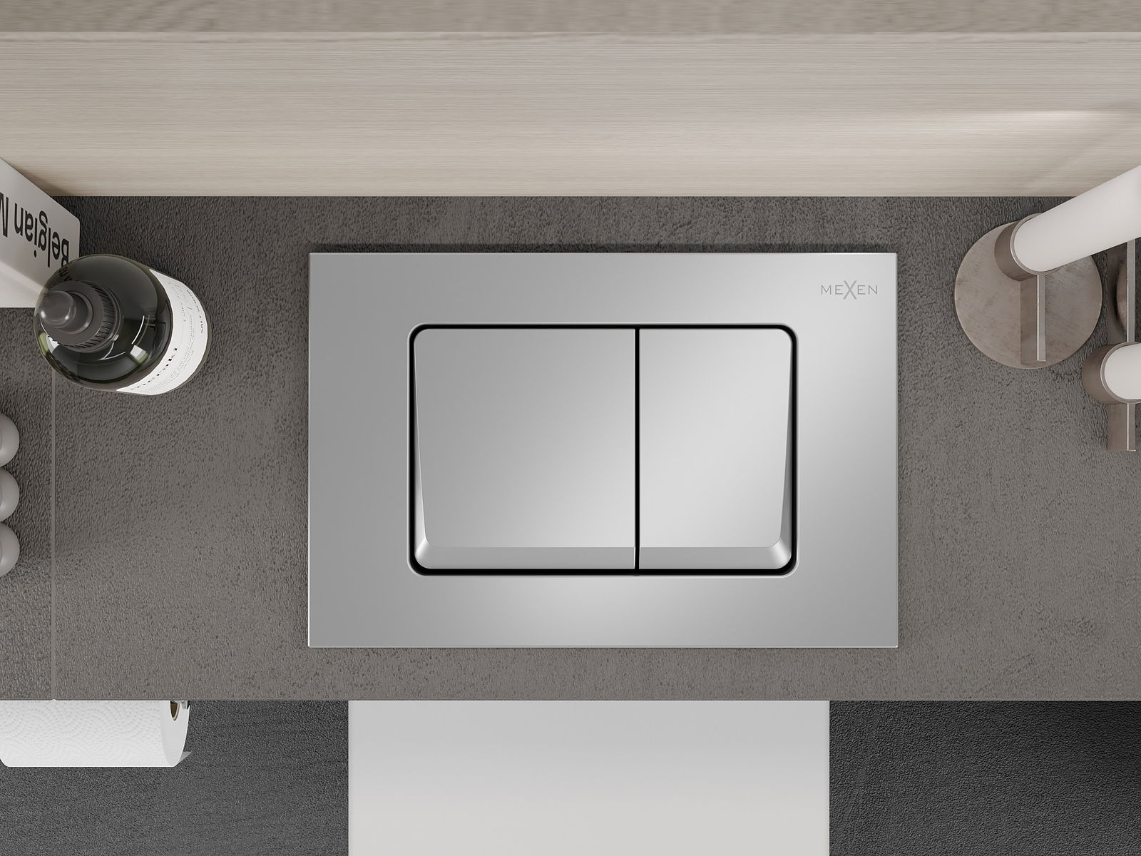 Le bouton est conçu pour les châssis Mexen de la série XS. Il peut être monté à la fois à l'avant et en haut du châssis, ce qui augmente son universalité. Cette solution facilite l'installation dans différentes conditions de montage. Ainsi, le contrôle de la chasse d'eau est pratique et intuitif.