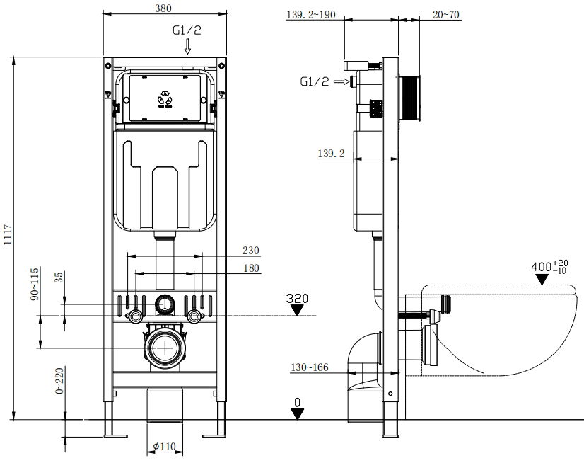 La possibilité de régler la hauteur du châssis permet un meilleur ajustement aux différentes conditions techniques dans la salle de bain. Une plage de réglage flexible assure le confort de l'installation et l'obtention de la hauteur optimale du châssis.