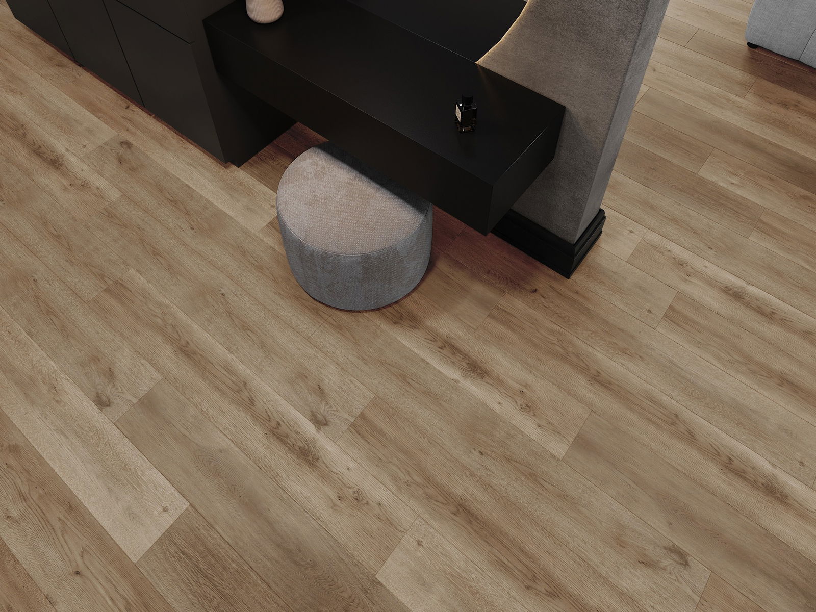 Les panneaux possèdent un joint à 4 côtés - chaque bord a été fraisée de manière à créer une jonction en forme de V après la pose. Ce design donne au sol une structure plus prononcée, ajoutant profondeur et caractère esthétique. Cet effet est particulièrement apprécié dans les aménagements modernes, où les détails soulignent l'aspect unique de l'intérieur.
