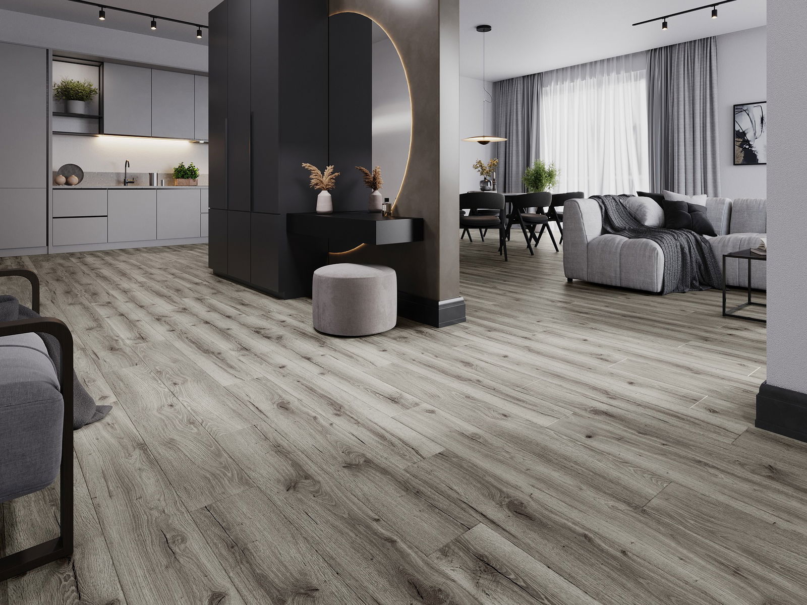 Les panneaux possèdent un joint à 4 côtés - chaque bord a été fraisée de manière à créer une jonction en forme de V après la pose. Ce design donne au sol une structure plus prononcée, ajoutant profondeur et caractère esthétique. Cet effet est particulièrement apprécié dans les aménagements modernes, où les détails soulignent l'aspect unique de l'intérieur.