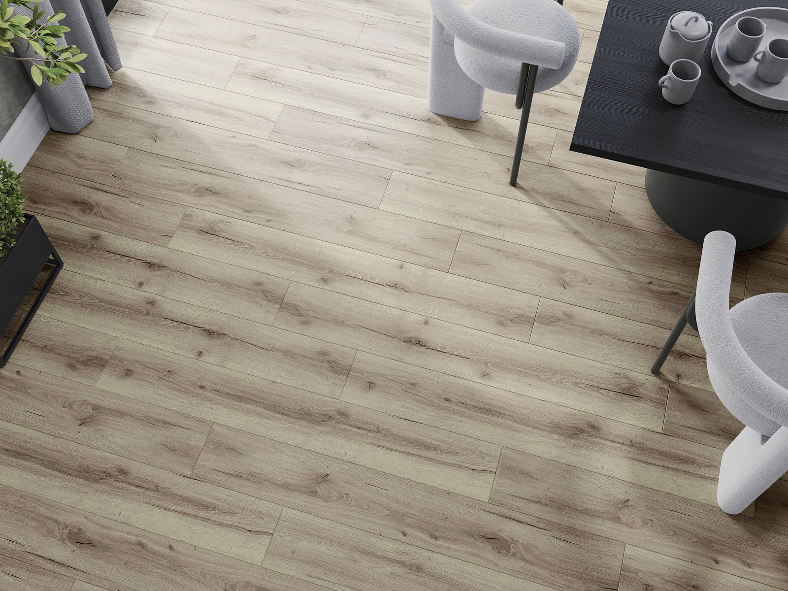Les panneaux possèdent un joint à 4 côtés - chaque bord a été fraisée de manière à créer une jonction en forme de V après la pose. Ce design donne au sol une structure plus prononcée, ajoutant profondeur et caractère esthétique. Cet effet est particulièrement apprécié dans les aménagements modernes, où les détails soulignent l'aspect unique de l'intérieur.