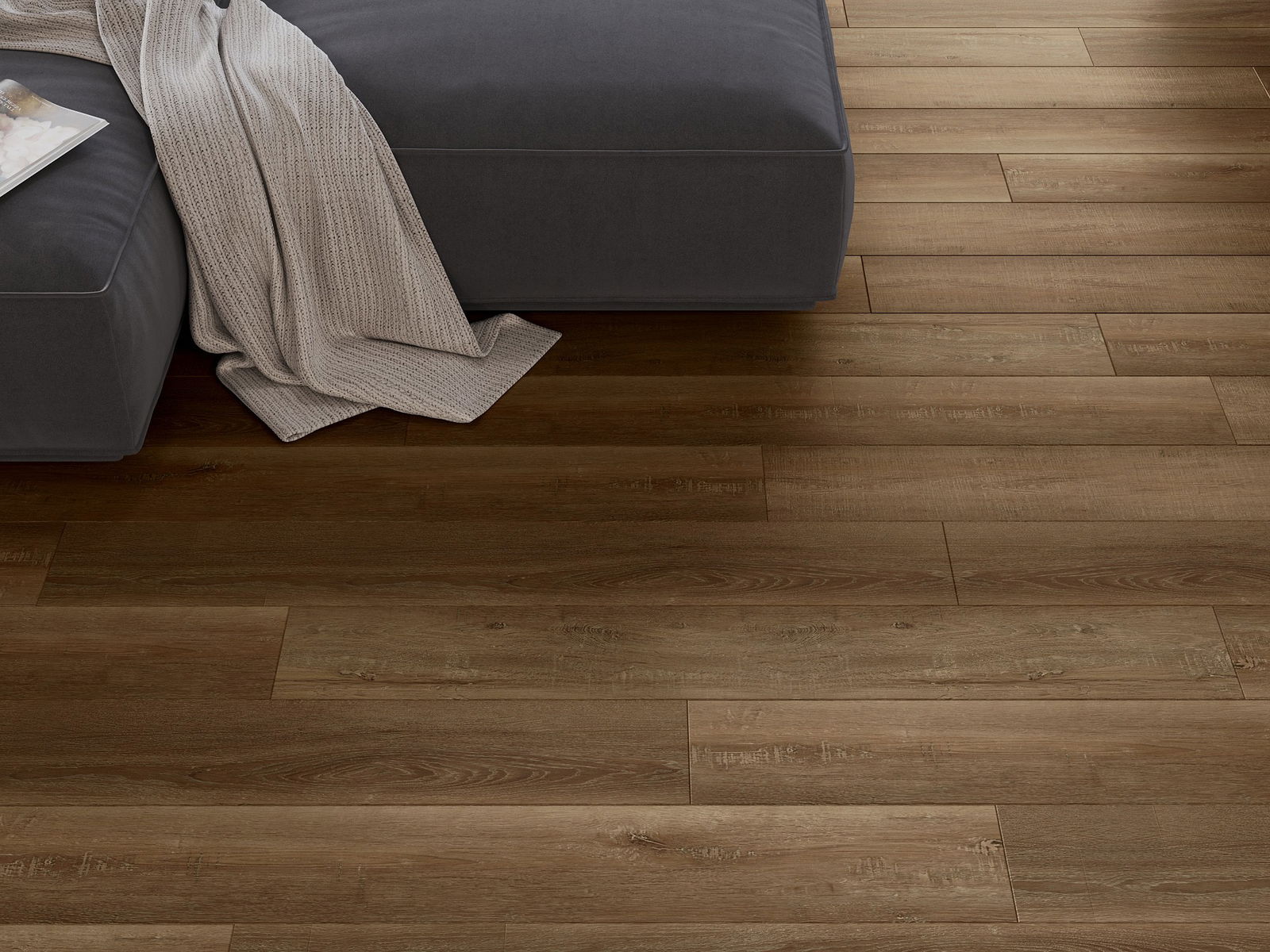 Les panneaux possèdent un joint à 4 côtés - chaque bord a été fraisée de manière à créer une jonction en forme de V après la pose. Ce design donne au sol une structure plus prononcée, ajoutant profondeur et caractère esthétique. Cet effet est particulièrement apprécié dans les aménagements modernes, où les détails soulignent l'aspect unique de l'intérieur.