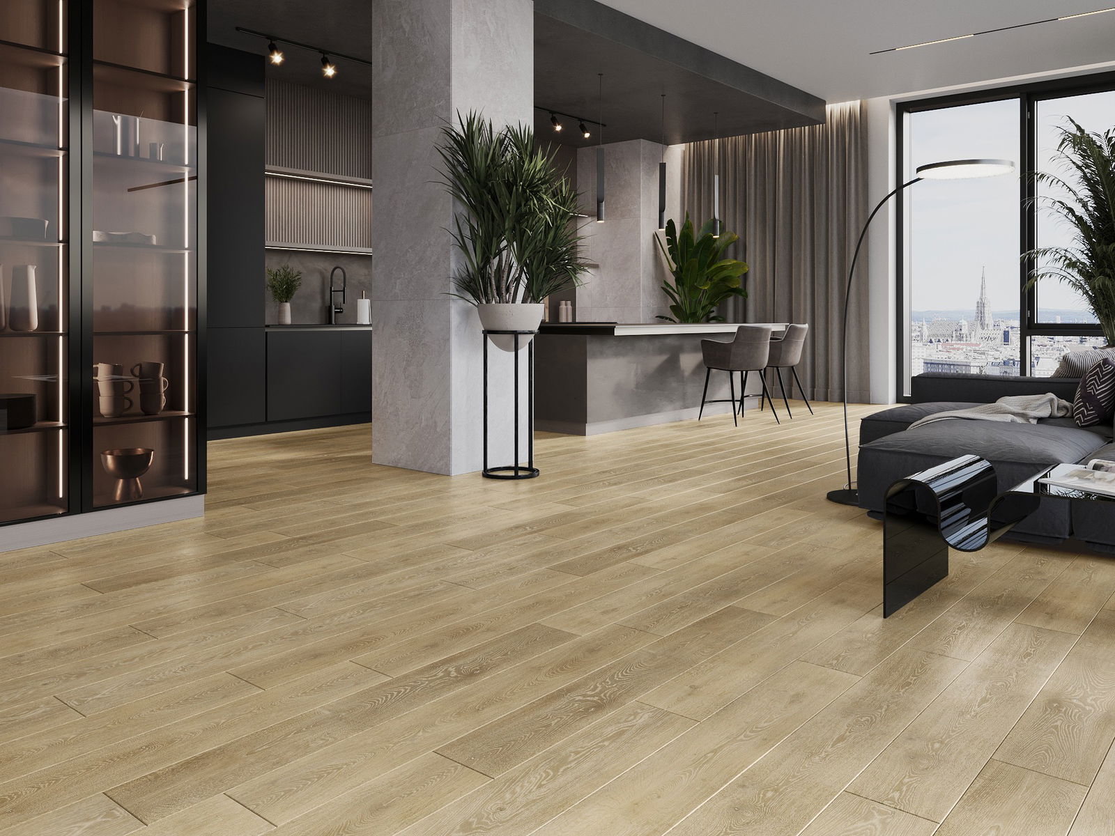 Les panneaux possèdent un joint à 4 côtés - chaque bord a été fraisée de manière à créer une jonction en forme de V après la pose. Ce design donne au sol une structure plus prononcée, ajoutant profondeur et caractère esthétique. Cet effet est particulièrement apprécié dans les aménagements modernes, où les détails soulignent l'aspect unique de l'intérieur.
