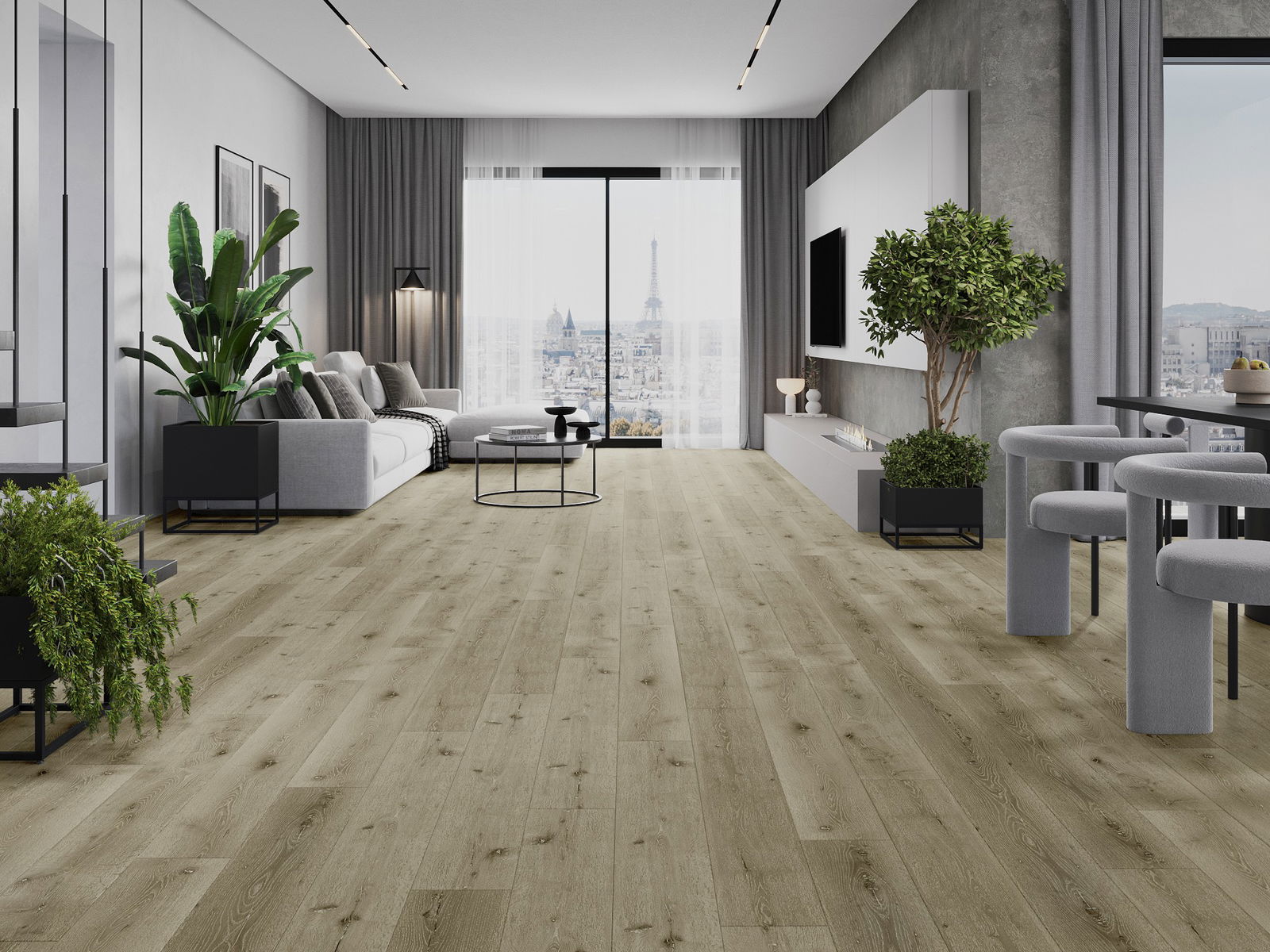 Les panneaux possèdent un joint à 4 côtés - chaque bord a été fraisée de manière à créer une jonction en forme de V après la pose. Ce design donne au sol une structure plus prononcée, ajoutant profondeur et caractère esthétique. Cet effet est particulièrement apprécié dans les aménagements modernes, où les détails soulignent l'aspect unique de l'intérieur.