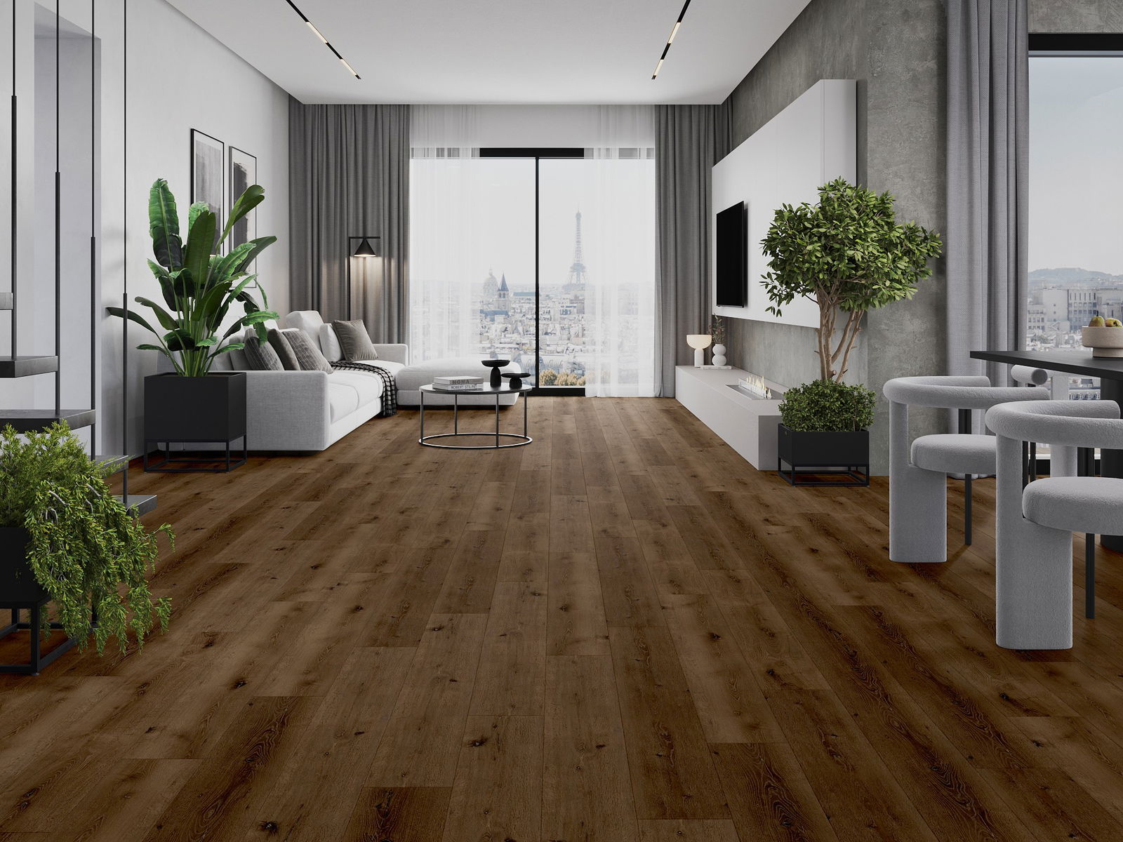 Les panneaux possèdent un joint à 4 côtés - chaque bord a été fraisée de manière à créer une jonction en forme de V après la pose. Ce design donne au sol une structure plus prononcée, ajoutant profondeur et caractère esthétique. Cet effet est particulièrement apprécié dans les aménagements modernes, où les détails soulignent l'aspect unique de l'intérieur.