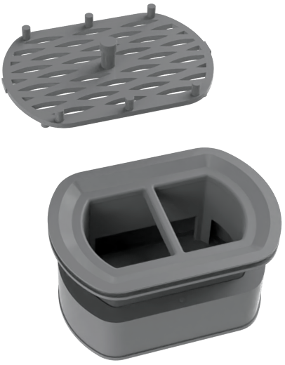 Système qui rend le nettoyage du siphon encore plus facile et plus rapide. Il suffit de retirer l'élément supérieur amovible, d'enlever les impuretés et de le rincer à l'eau. Un soutien idéal pour maintenir l'hygiène et la propreté dans la salle de bain.