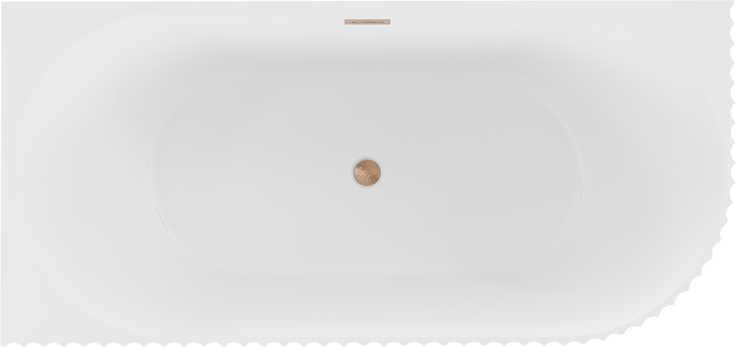 Mexen Gia baignoire autoportante d'angle nervurée gauche 150 x 75 cm, blanc mat, trop-plein cuivre brossé - 52701507501L-65