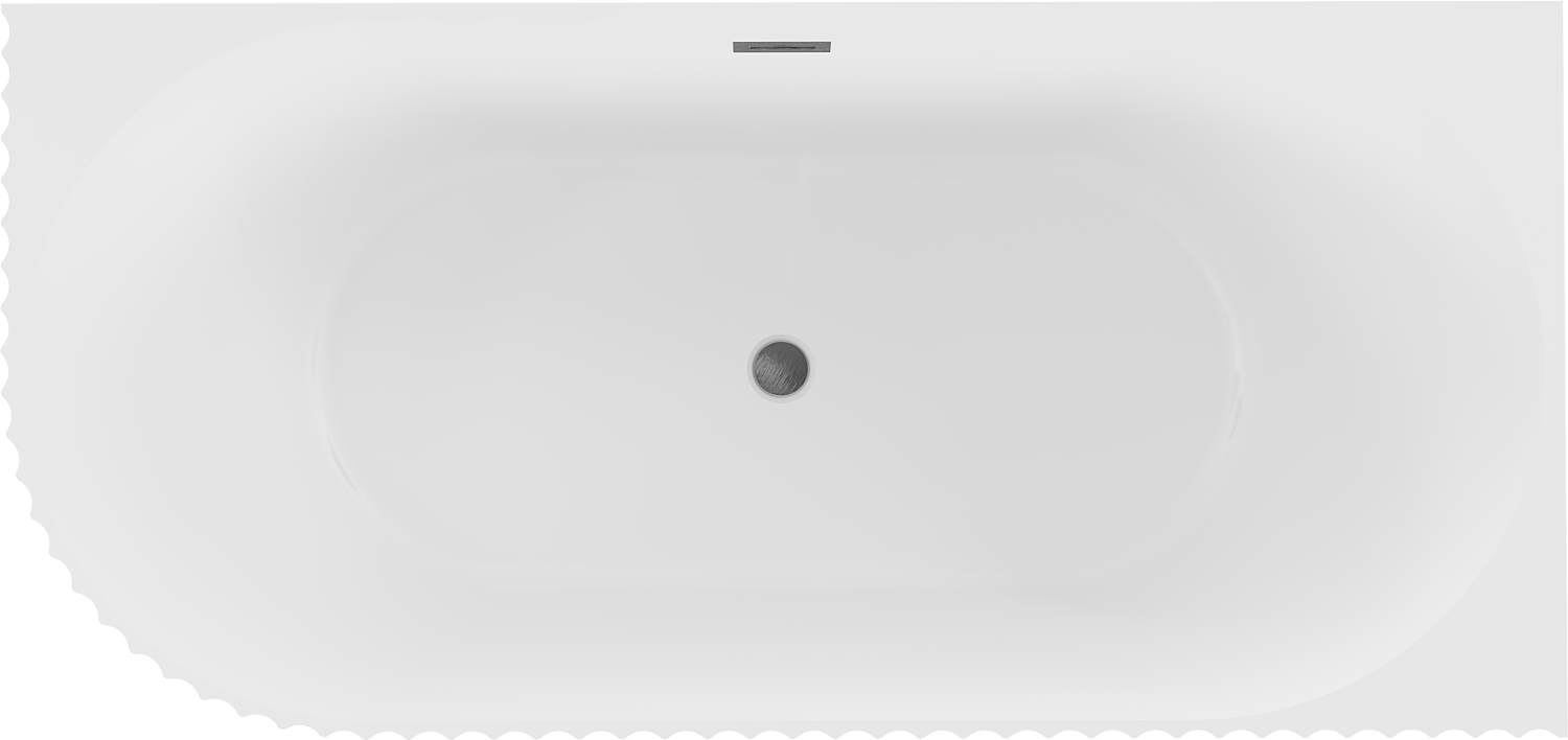 Mexen Gia baignoire autoportante d'angle cannelée droite 150 x 75 cm, blanc mat, trop-plein gris canon brossé