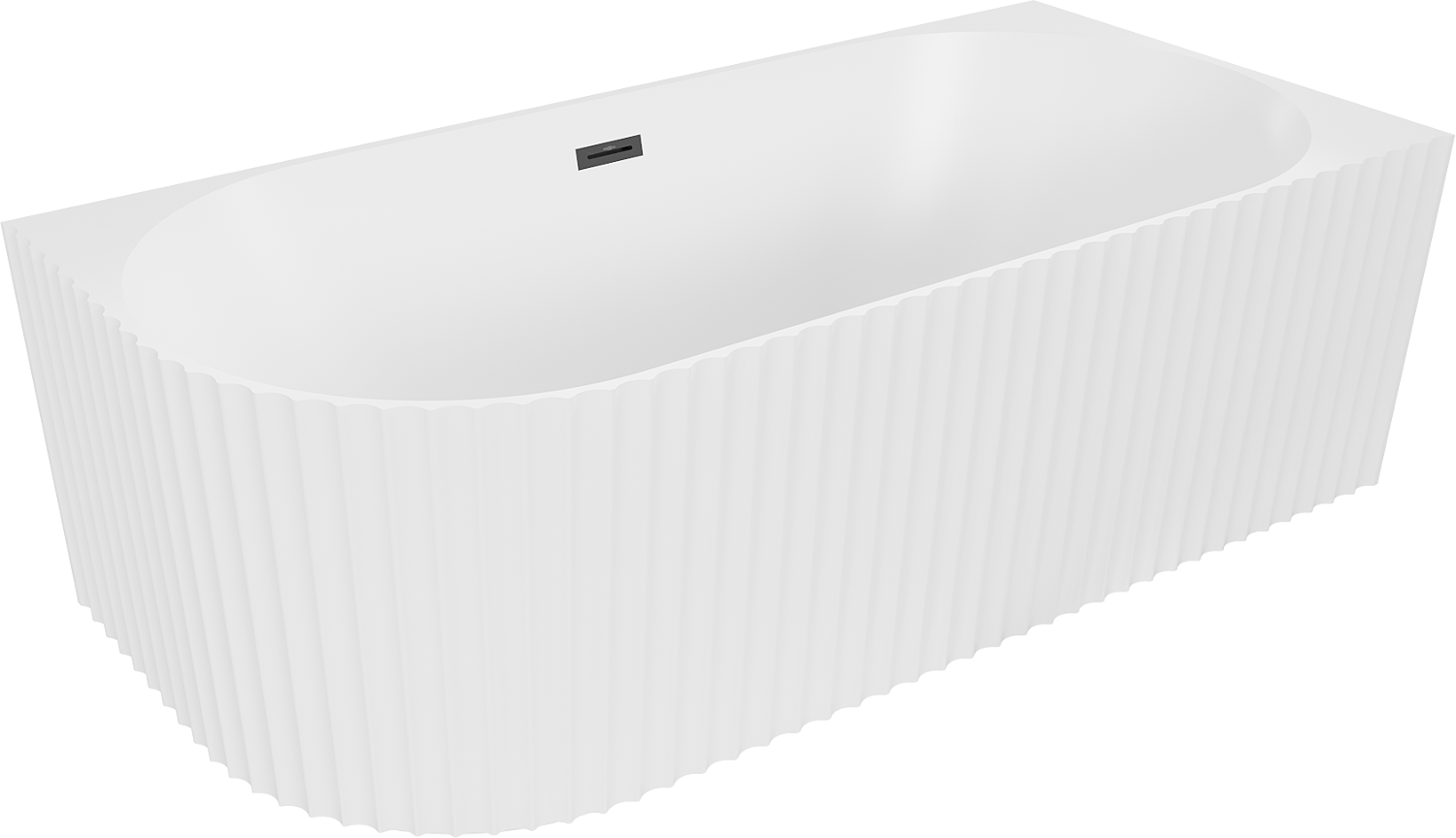 Mexen Gia baignoire autoportante d'angle rainurée droite 150 x 75 cm, blanc mat, trop-plein noir - 52701507501P-70