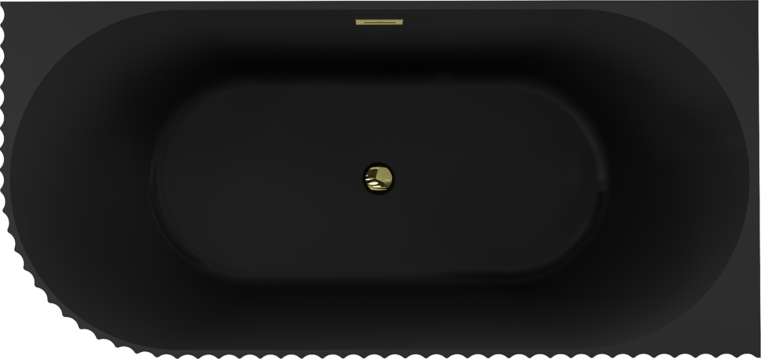 Mexen Gia baignoire autoportante d'angle cannelée droite 150 x 75 cm, noir mat, trop-plein doré - 52701507571P-50