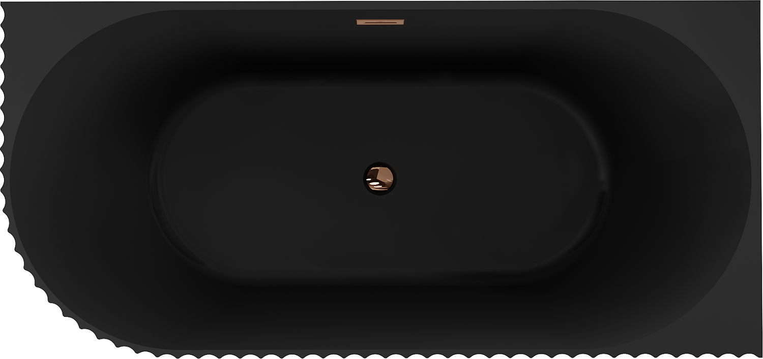 Mexen Gia baignoire autoportante d'angle rainurée droite 150 x 75 cm, noir mat, trop-plein or rose - 52701507571P-60
