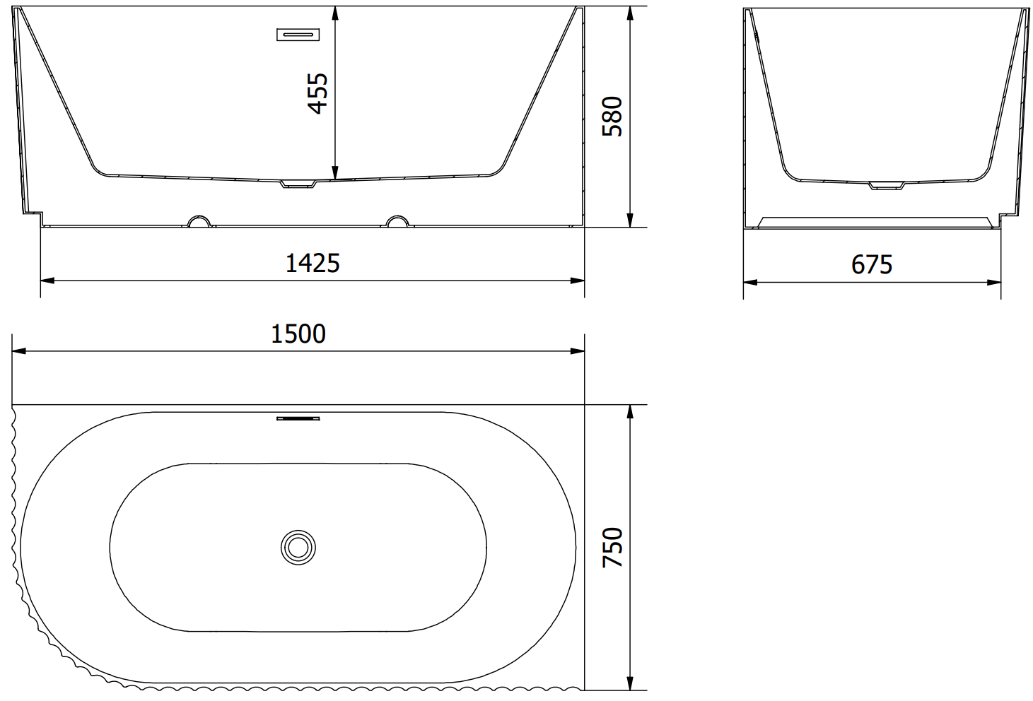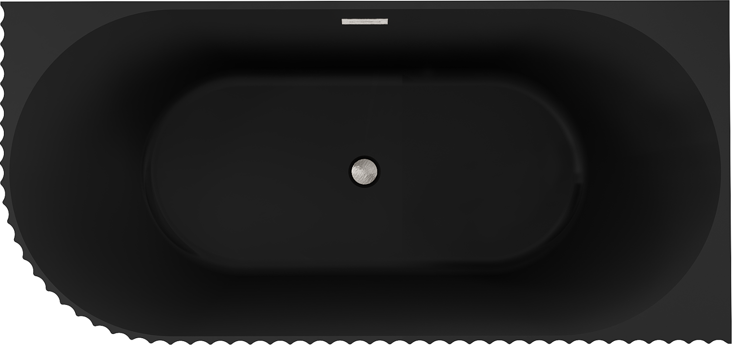Mexen Gia baignoire autoportante d'angle rainurée droite 150 x 75 cm, noir mat, trop-plein en nickel brossé - 52701507571P-97