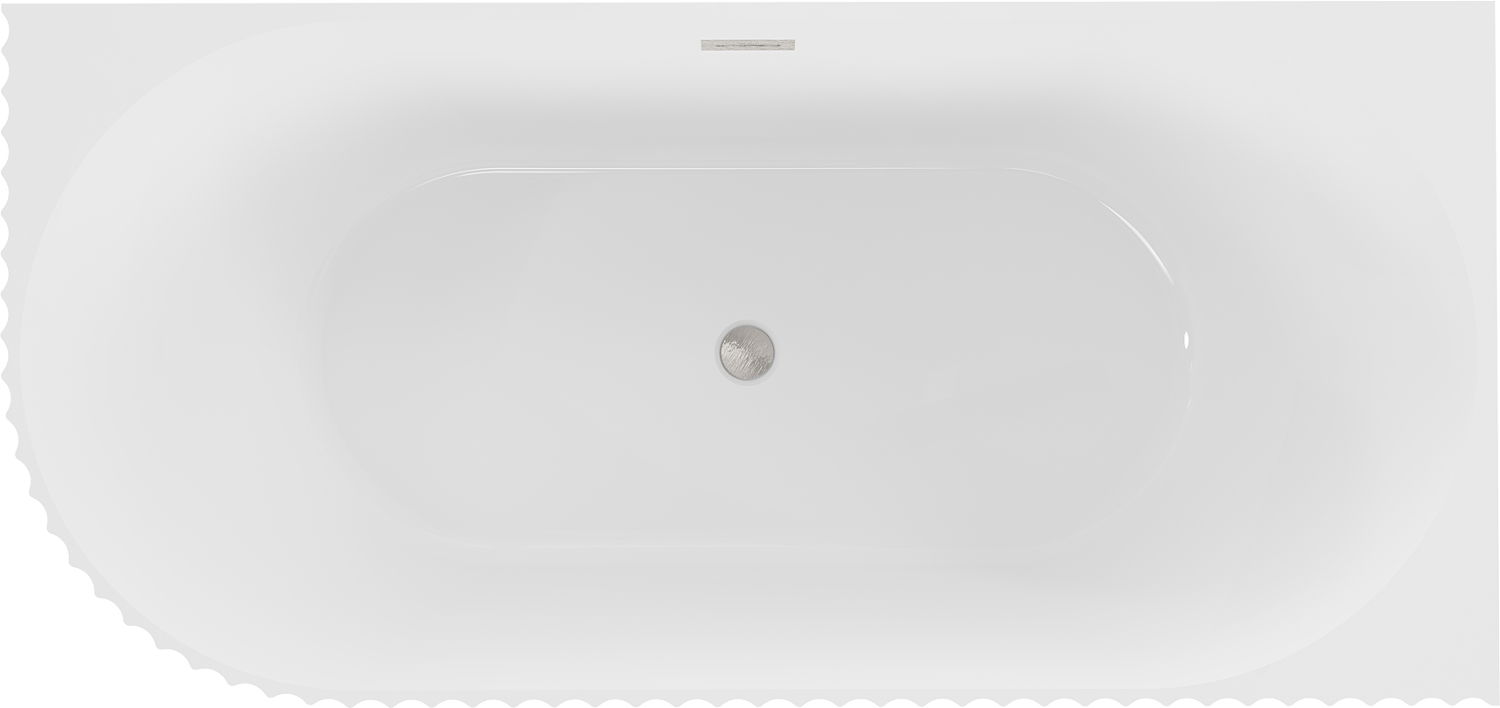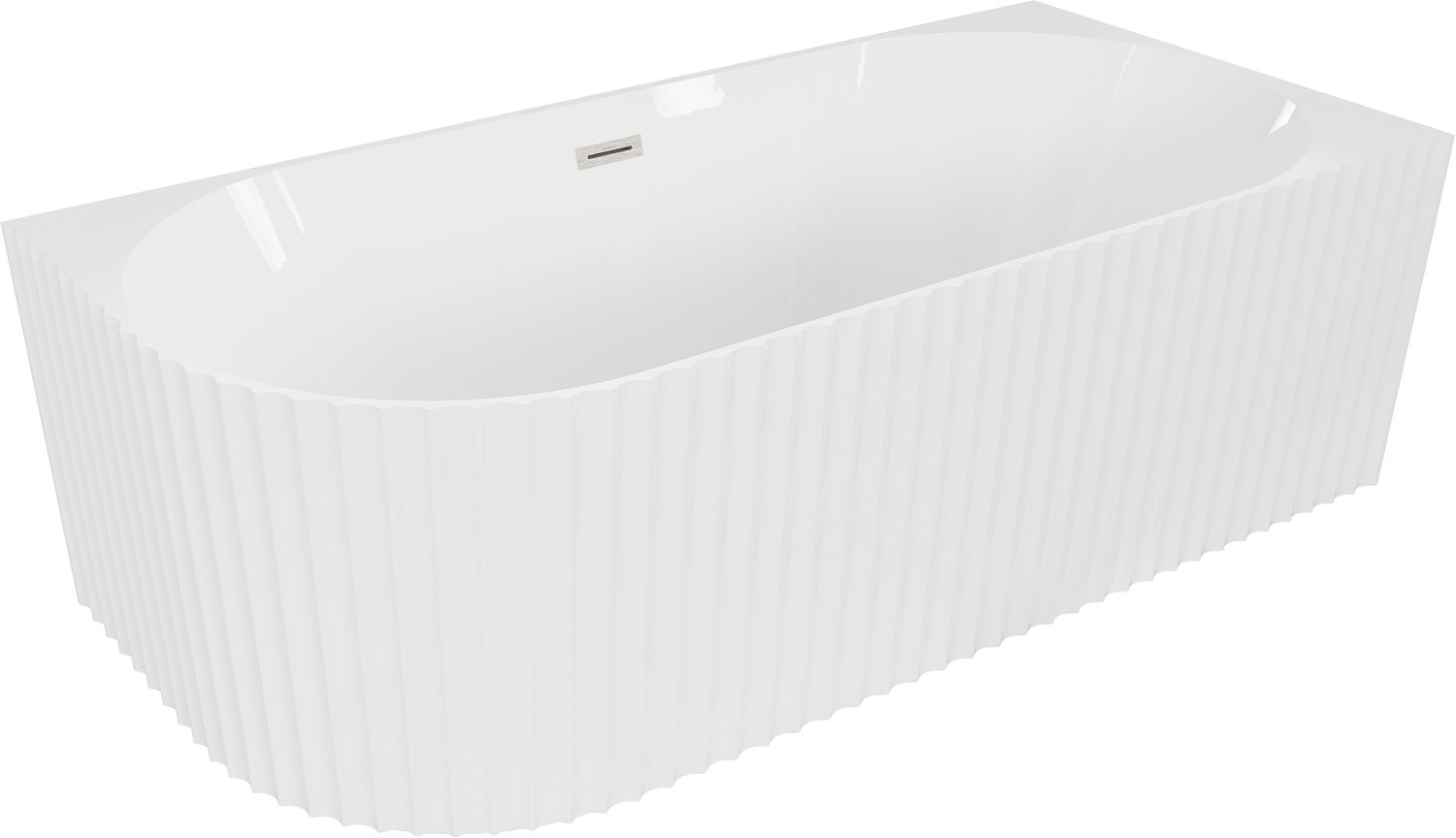 Mexen Gia baignoire autoportante d'angle rainurée à droite 170 x 80 cm, blanc brillant, trop-plein en nickel brossé
