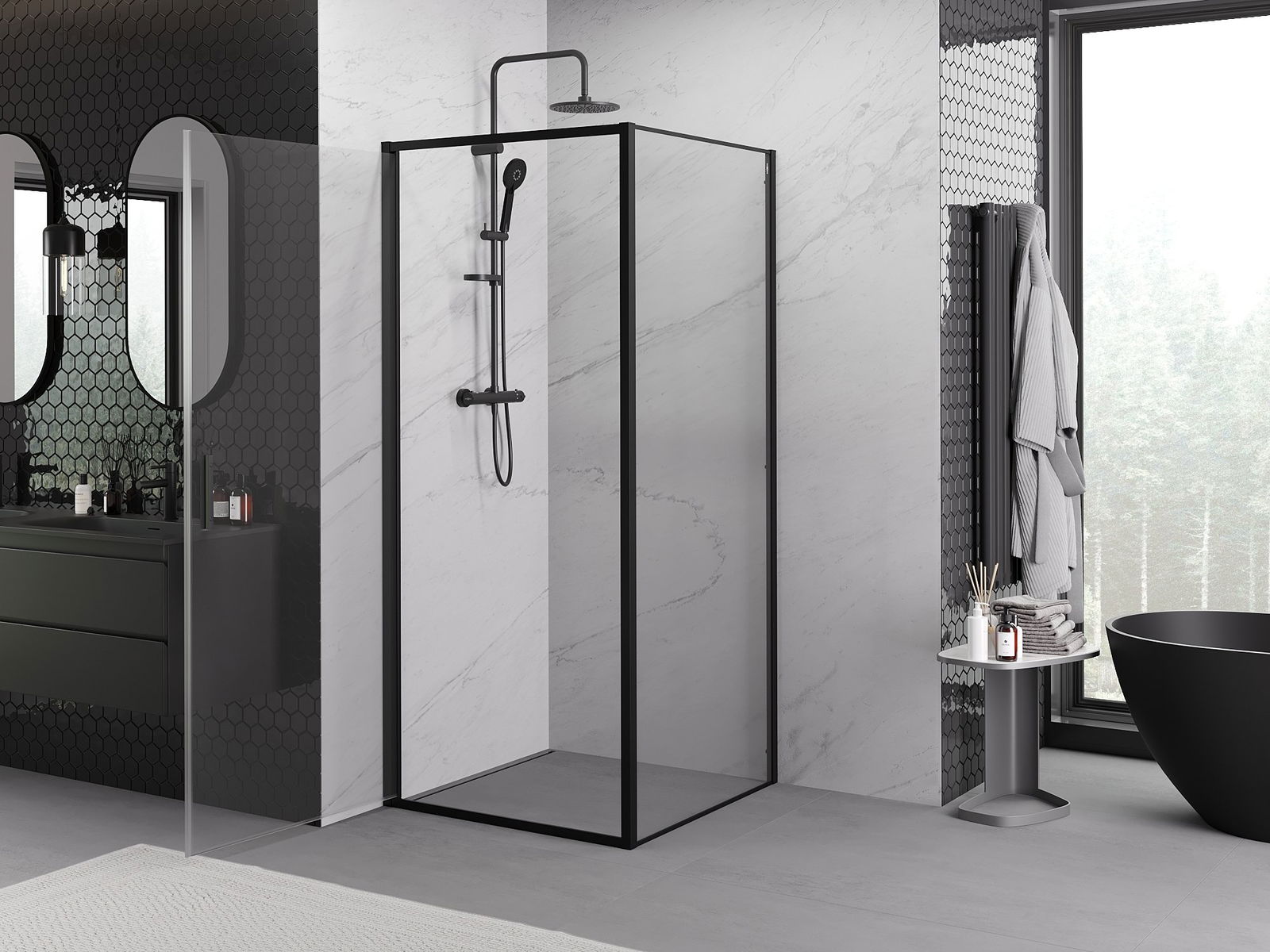 Mexen Exo cabine de douche pivotante 70 x 70 cm, transparente, noire - 817-070-070-70-00