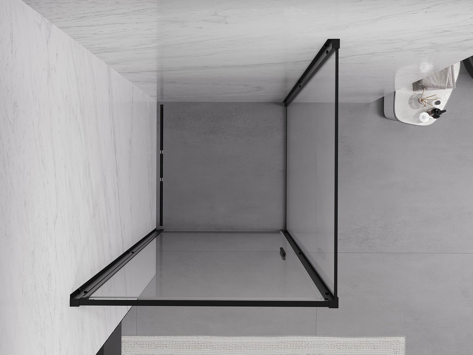 La poignée pratique et confortable est fabriquée en métal durable et résistant. Sa forme à la mode, combinée à une finition assortie à la couleur des profilés, donne à l'ensemble un aspect moderne et stylé, soulignant l'esthétique de chaque salle de bain.