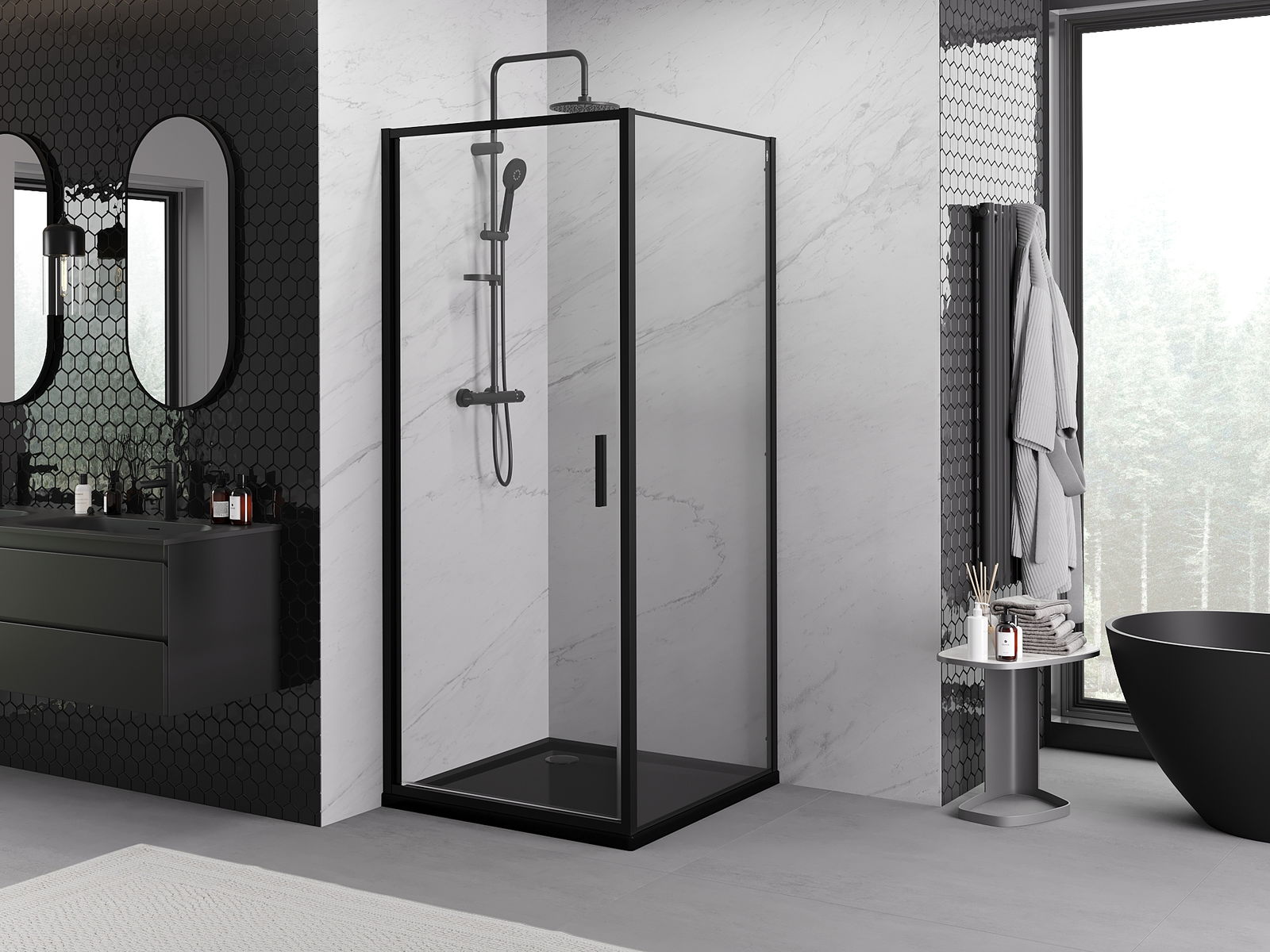 Mexen Rio cabine de douche carrée 90 x 90 cm, transparente, noire - 860-090-090-70-00