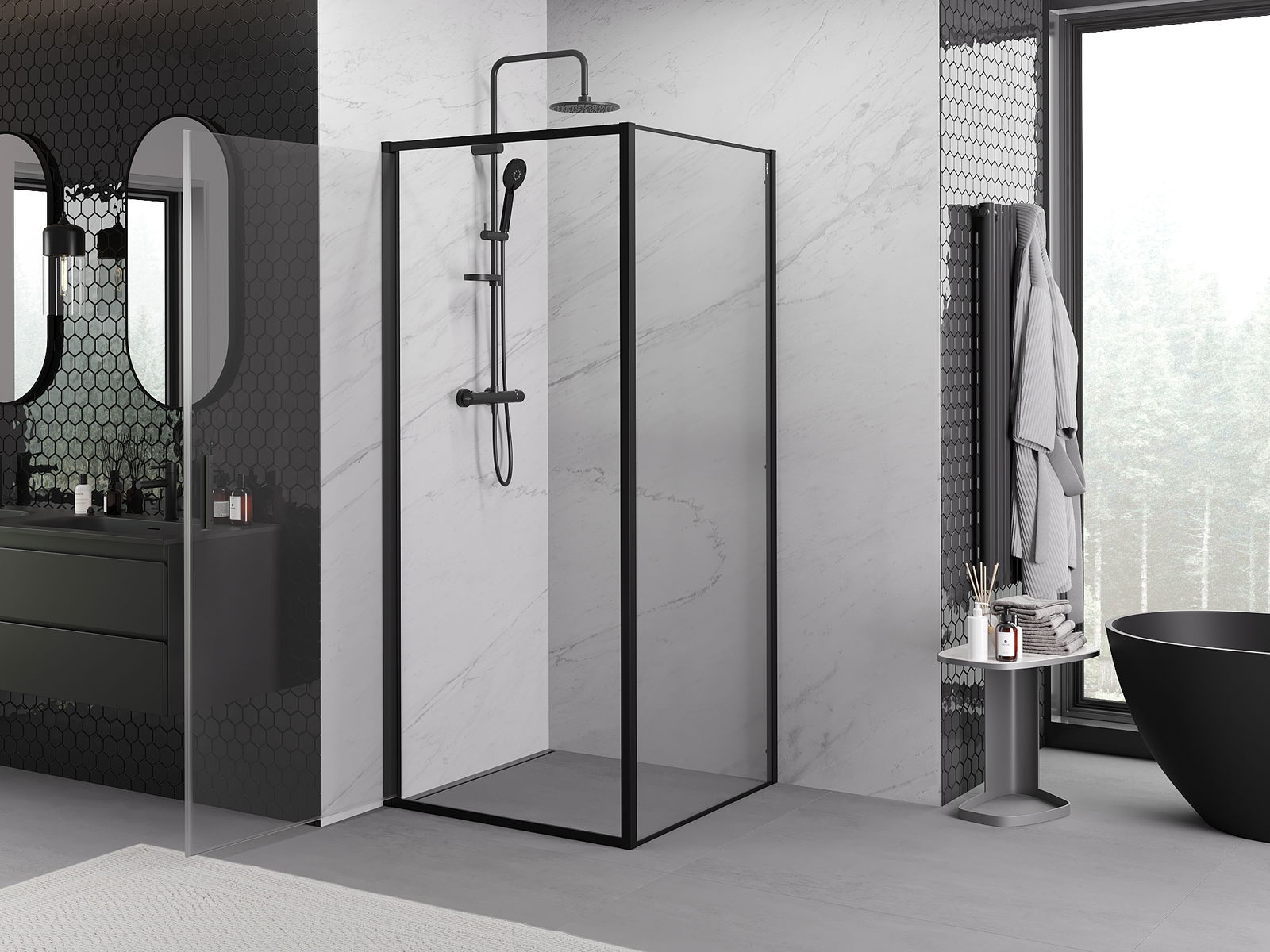 Mexen Exo cabine de douche pivotante 85 x 85 cm, transparent, noire - 817-085-085-70-00