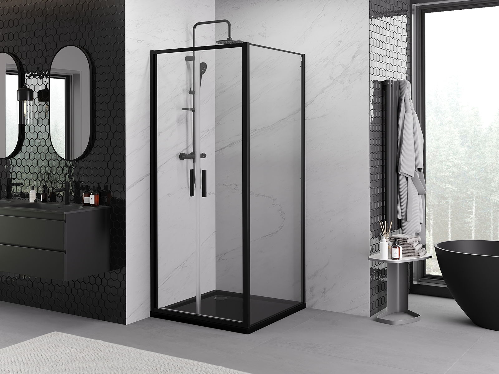 Mexen Rio cabine de douche carrée 90 x 90 cm, transparente, noire - 860-090-090-70-00