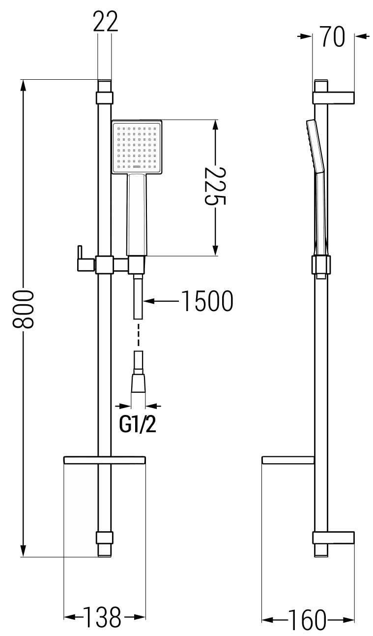 Le pommeau de douche est doté d'un jet pluie. Ce jet imite la pluie naturelle et s'écoule uniformément sur le corps. Il procure une sensation douce et relaxante pendant le bain, qui devient un véritable moment de détente.