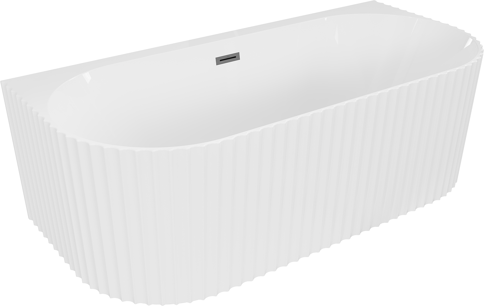 Mexen Sella baignoire îlot mural rainurée 150 x 75 cm, blanc brillant, trop-plein gun metal - 52711507500-95