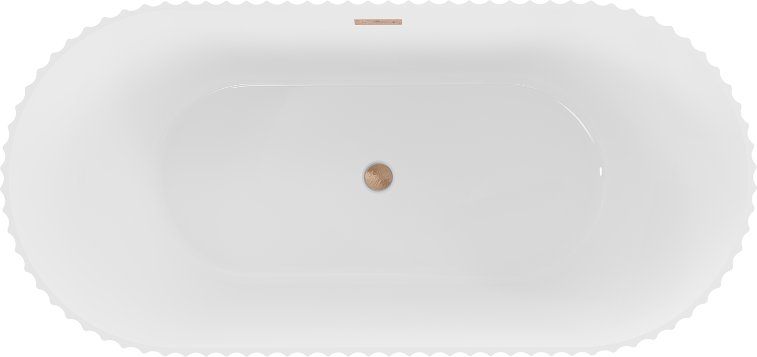 Mexen Paola baignoire autoportante rainurée 150 x 75 cm, blanc brillant, trop-plein cuivre brossé - 52721507500-65