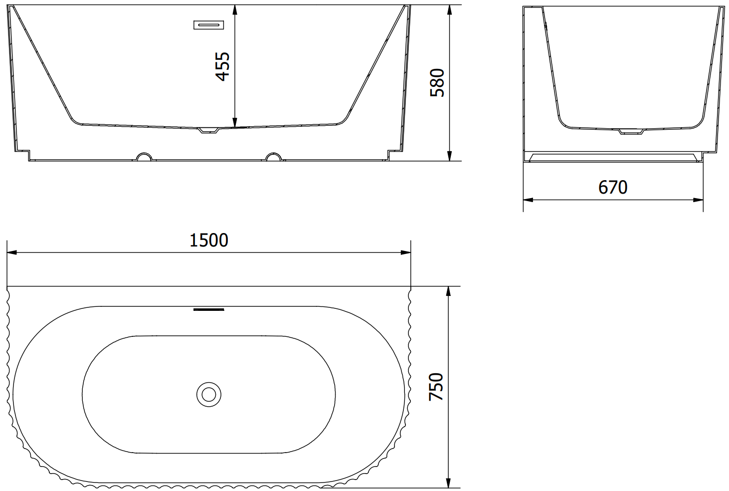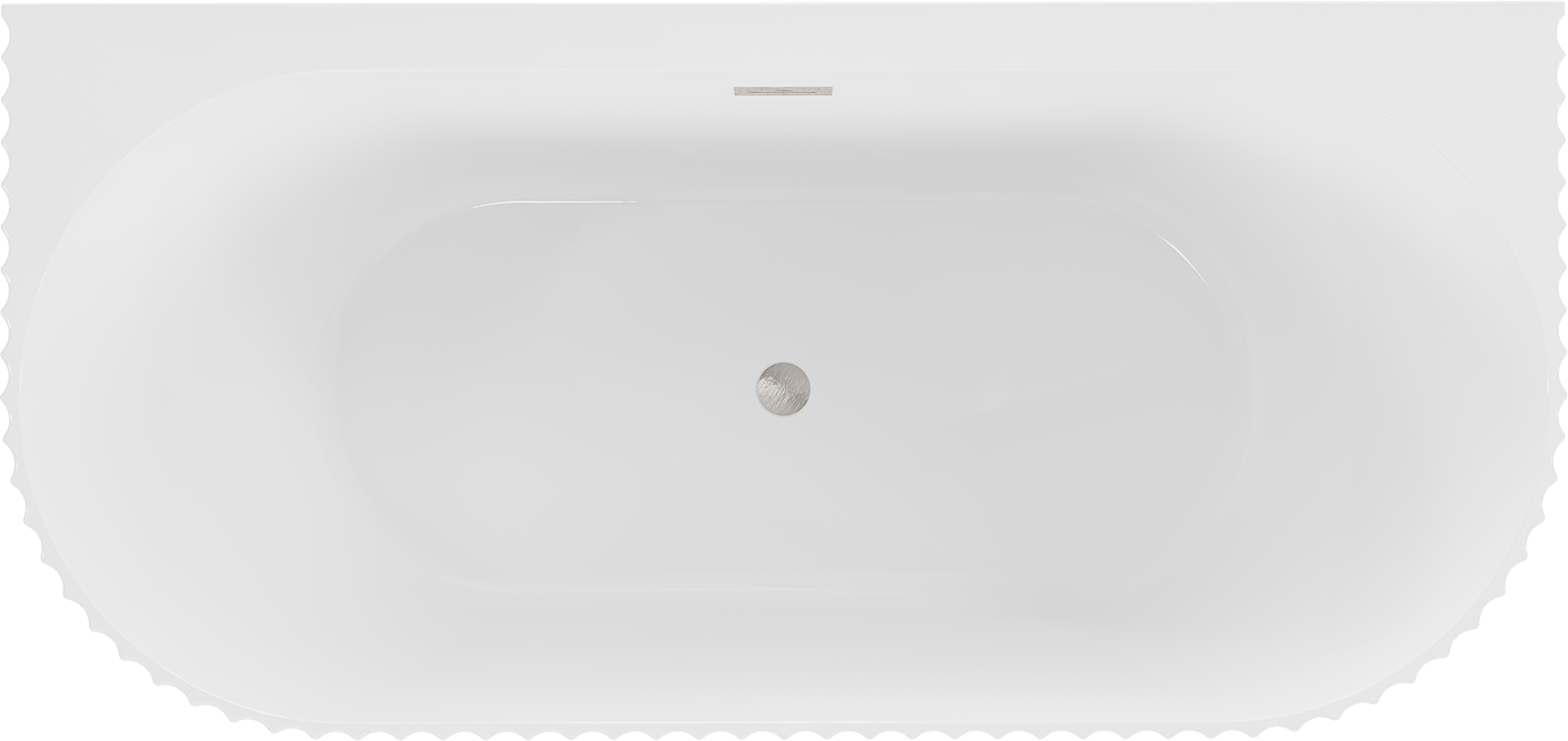 Mexen Sella baignoire autoportante à adosser, cannelée 150 x 75 cm, blanc brillant, trop-plein en nickel brossé
