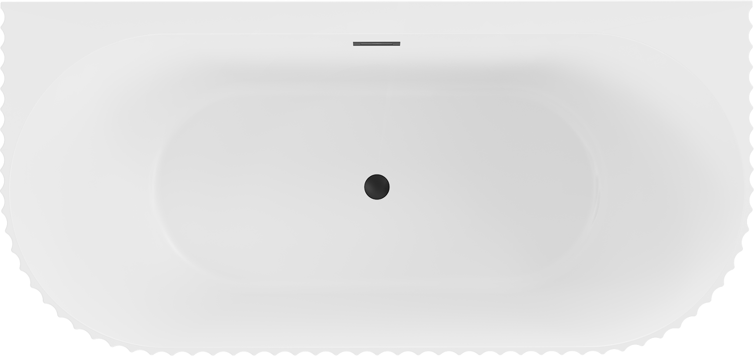 Mexen Sella baignoire autoportante adossée rainurée 150 x 75 cm, blanc mat, trop-plein noir - 52711507501-70