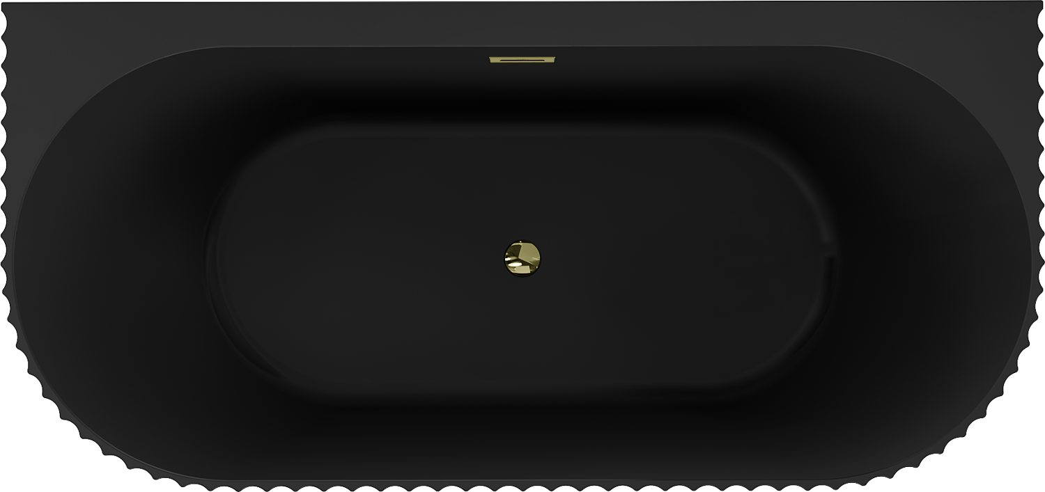 Mexen Sella baignoire autoportante murale nervurée 150 x 75 cm, noir mat, trop-plein doré - 52711507571-50