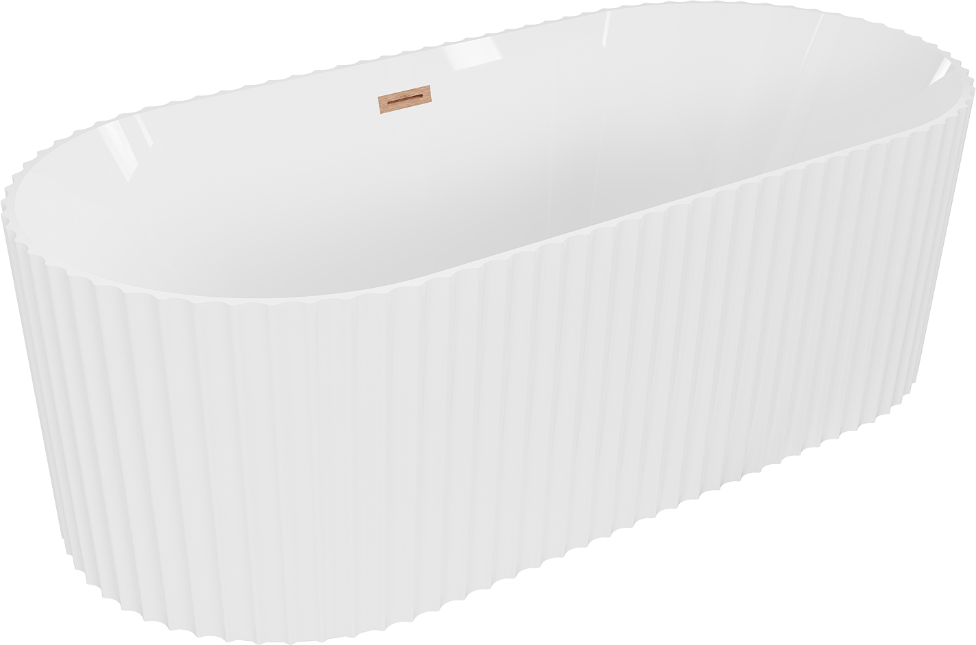 Mexen Paola baignoire autoportante cannelée 170 x 80 cm, blanc brillant, trop-plein cuivre brossé - 52721708000-65