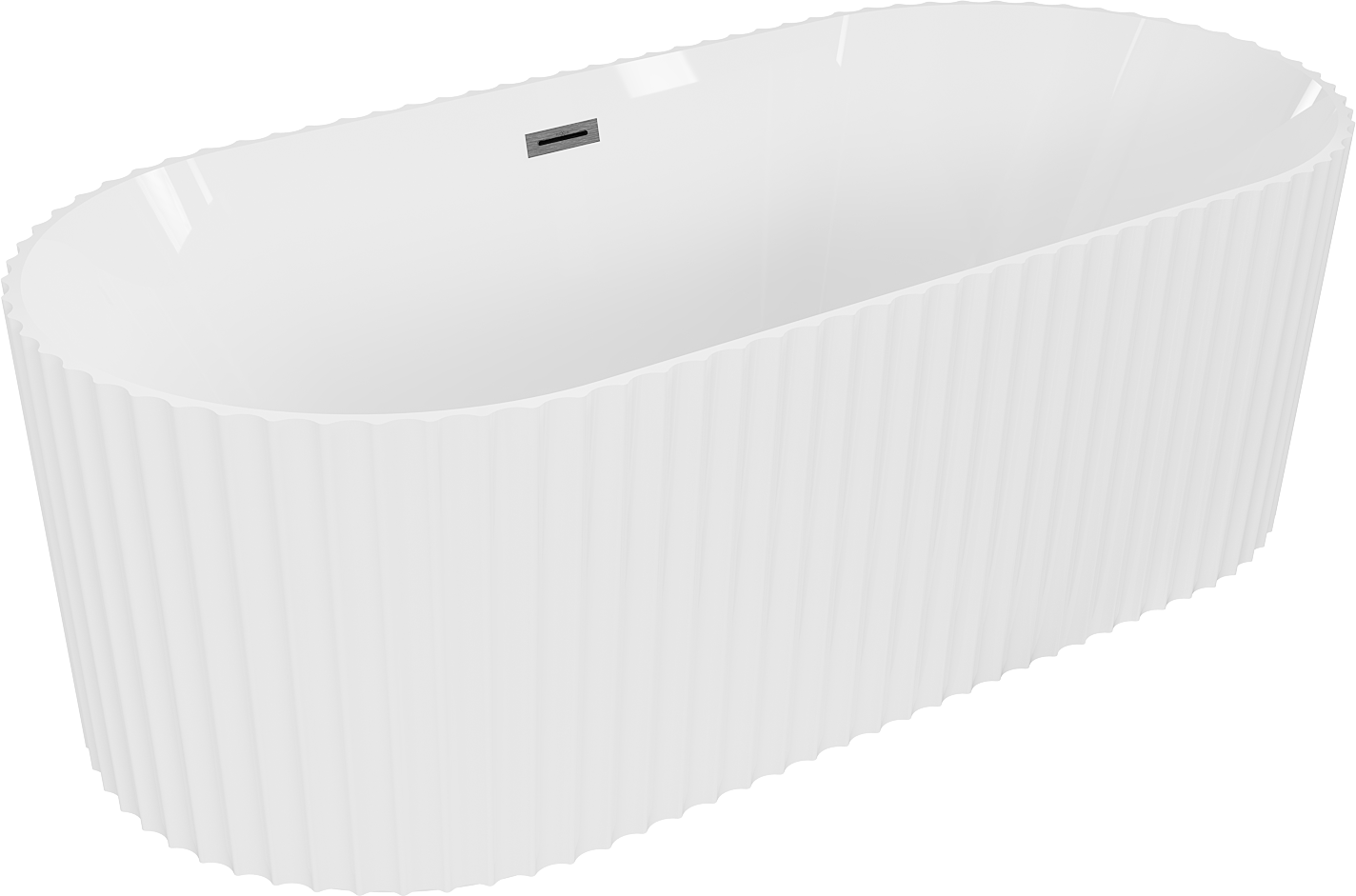 Mexen Paola baignoire autoportante cannelée 170 x 80 cm, blanc brillant, trop-plein gris canon brossé - 52721708000-66