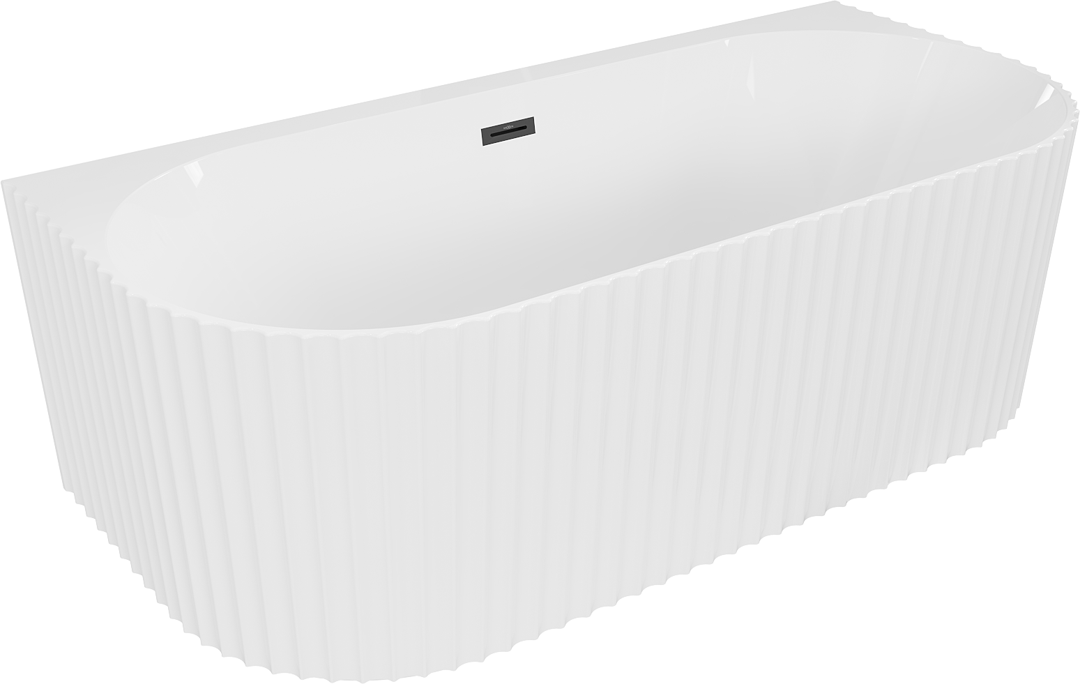 Mexen Sella baignoire autoportante contre le mur nervurée 170 x 80 cm, blanc brillant, trop-plein noir - 52711708000-70