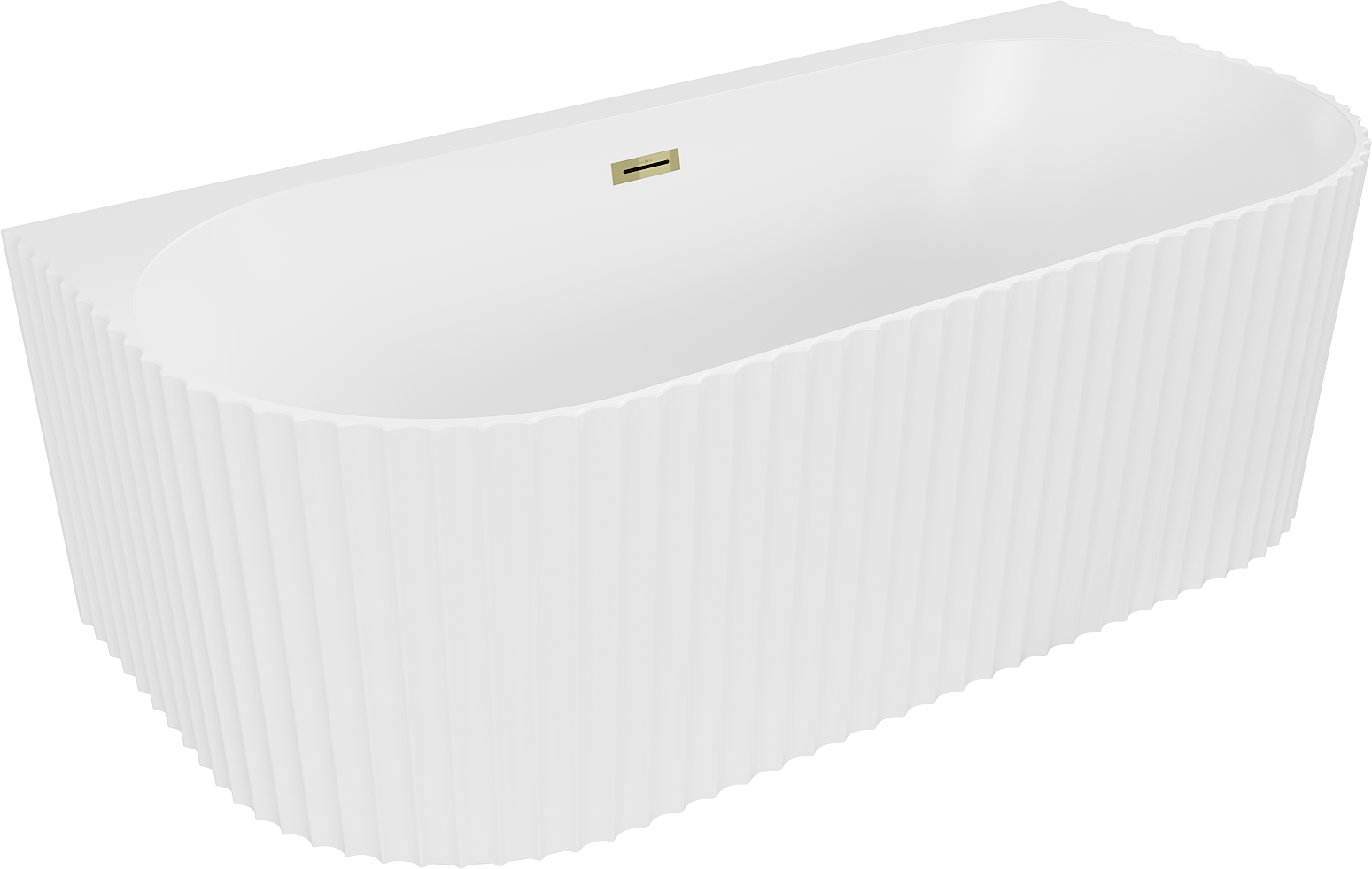 Mexen Sella baignoire autoportante murale cannelée 170 x 80 cm, blanc mat, trop-plein doré - 52711708001-50