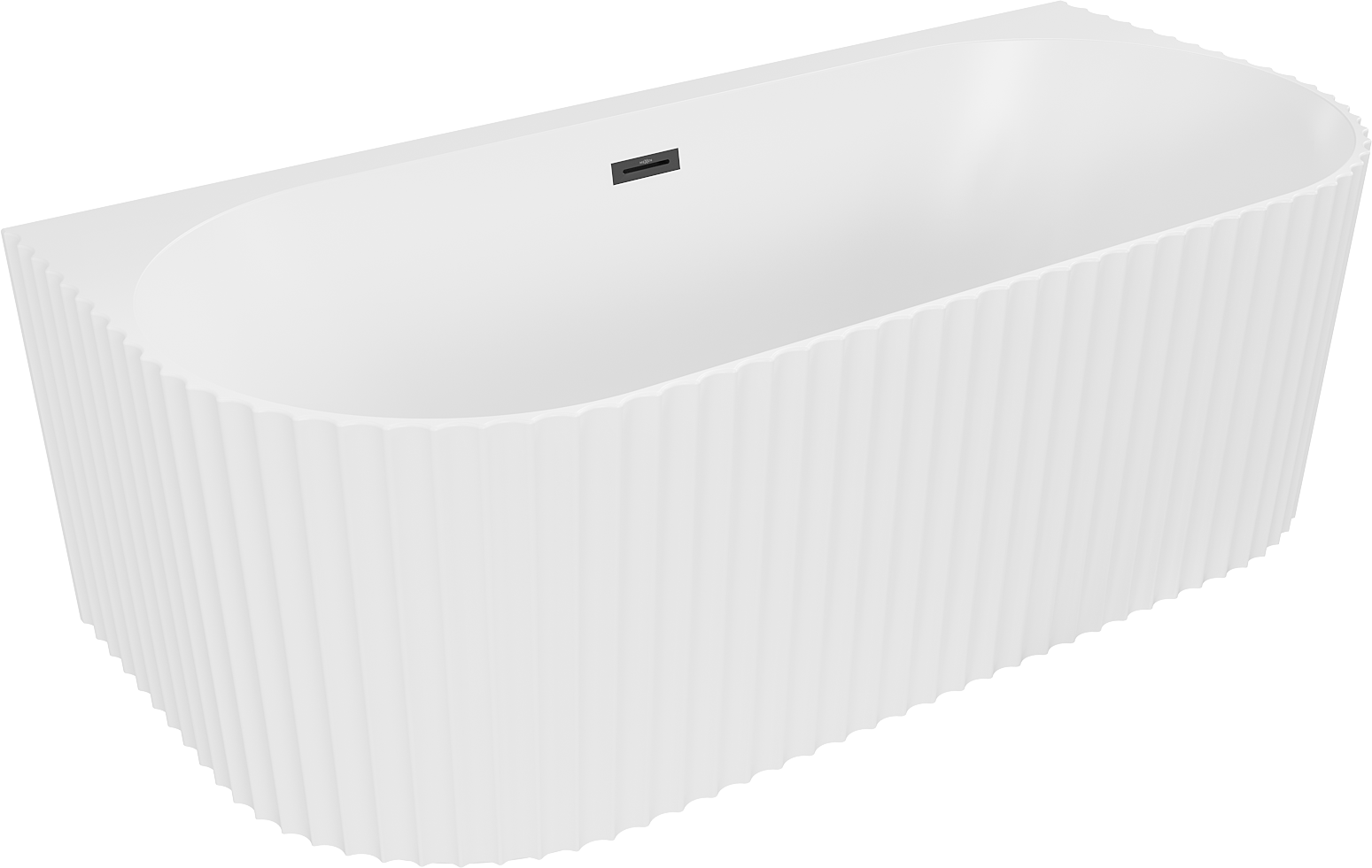 Mexen Sella baignoire autoportante contre le mur rainurée 170 x 80 cm, blanc mat, trop-plein noir - 52711708001-70