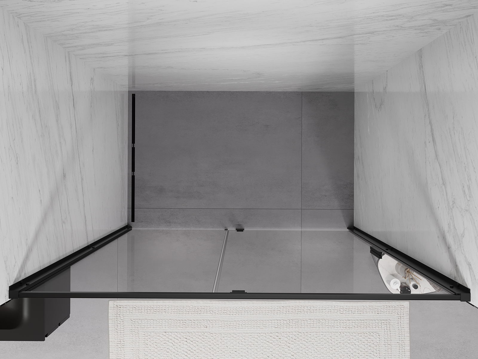 La poignée pratique et confortable est fabriquée en métal durable et résistant. Sa forme à la mode, combinée à une finition assortie à la couleur des profilés, donne à l'ensemble un aspect moderne et stylé, soulignant l'esthétique de chaque salle de bain.