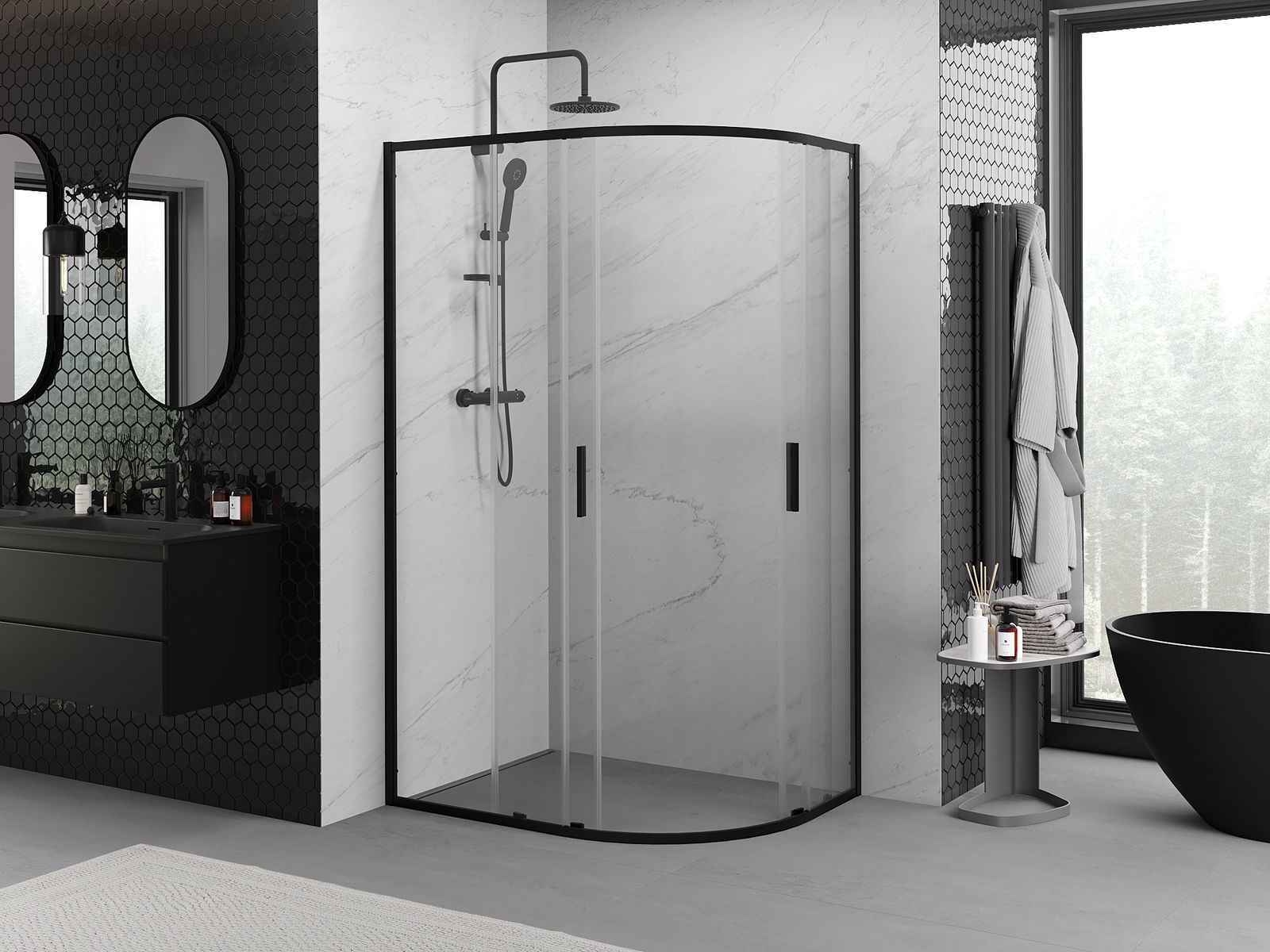 Mexen Exo cabine de douche quart-rond asymétrique coulissante 120 x 90 cm, transparent, noir - 8132-120-090-70-00