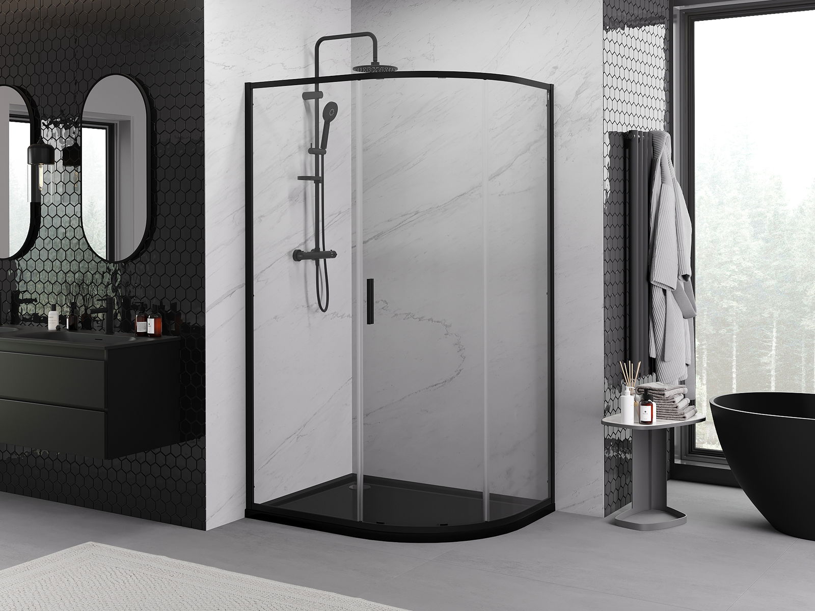 Mexen Exo cabine de douche quart de cercle asymétrique coulissante 100 x 90 cm, transparent, noir - 8131-100-090-70-00
