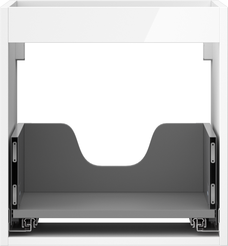La découpe dans le tiroir est conçue de manière à accueillir le siphon, qui est nécessaire dans les installations de lavabo. Ainsi, le meuble peut être installé de manière pleinement fonctionnelle, sans devoir renoncer à l'espace du tiroir au profit de l'installation.