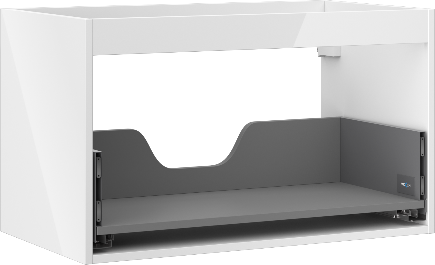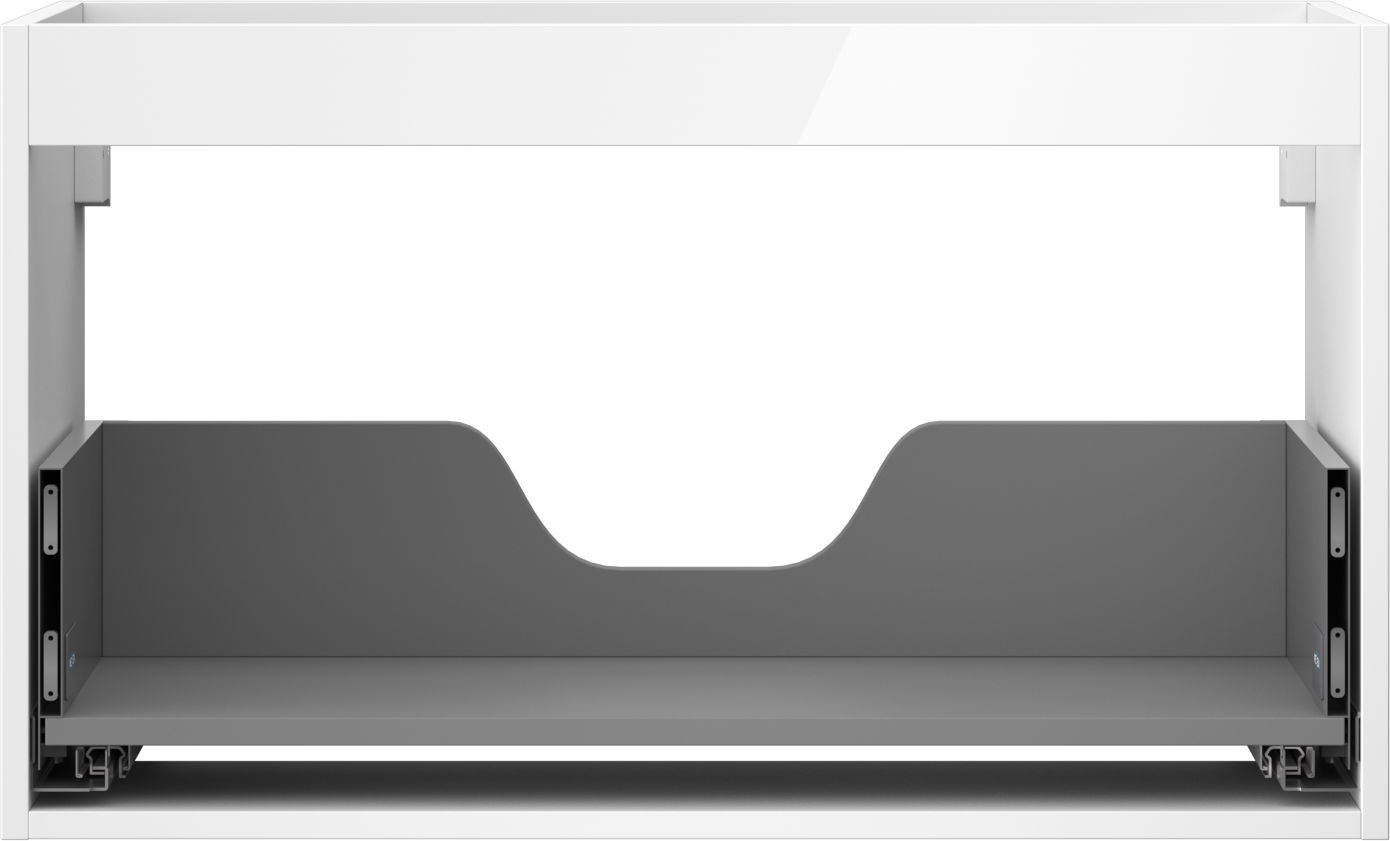 La découpe dans le tiroir est conçue de manière à accueillir le siphon, qui est nécessaire dans les installations de lavabo. Ainsi, le meuble peut être installé de manière pleinement fonctionnelle, sans devoir renoncer à l'espace du tiroir au profit de l'installation.